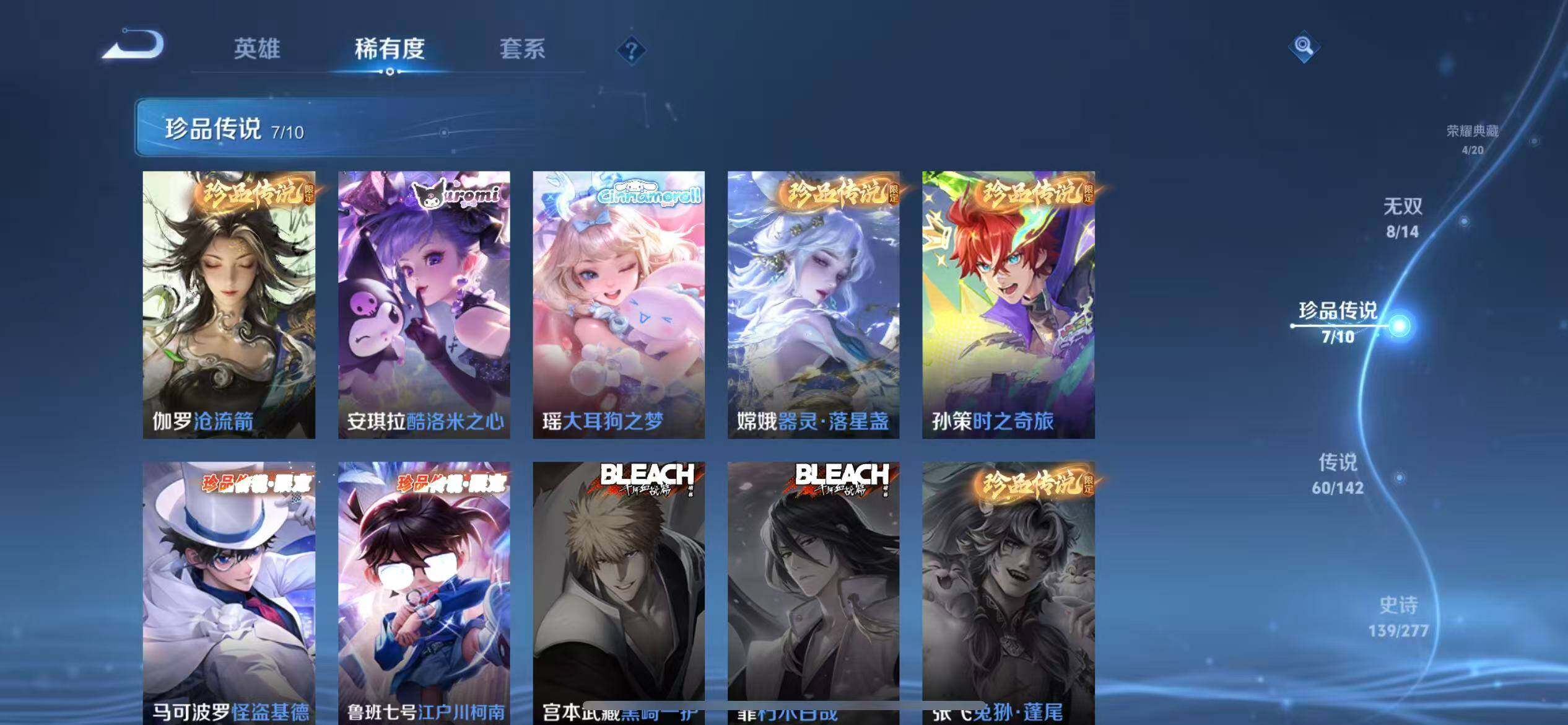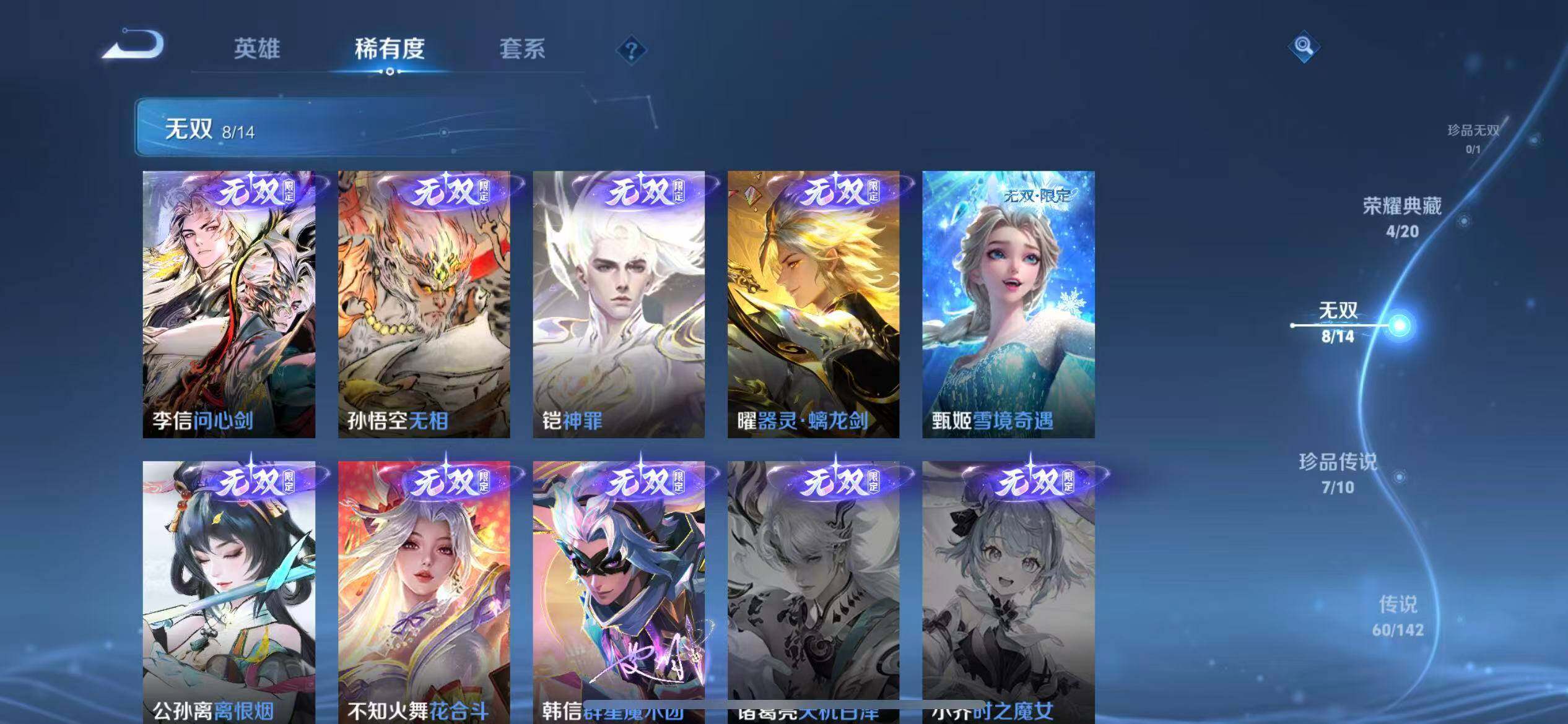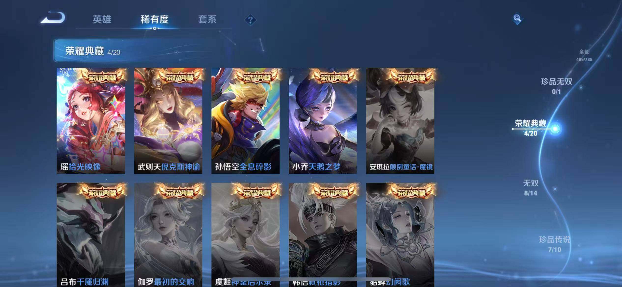 【8无双7珍品5典藏】V11-至尊星耀IV段位-130英雄-485皮肤-4典藏