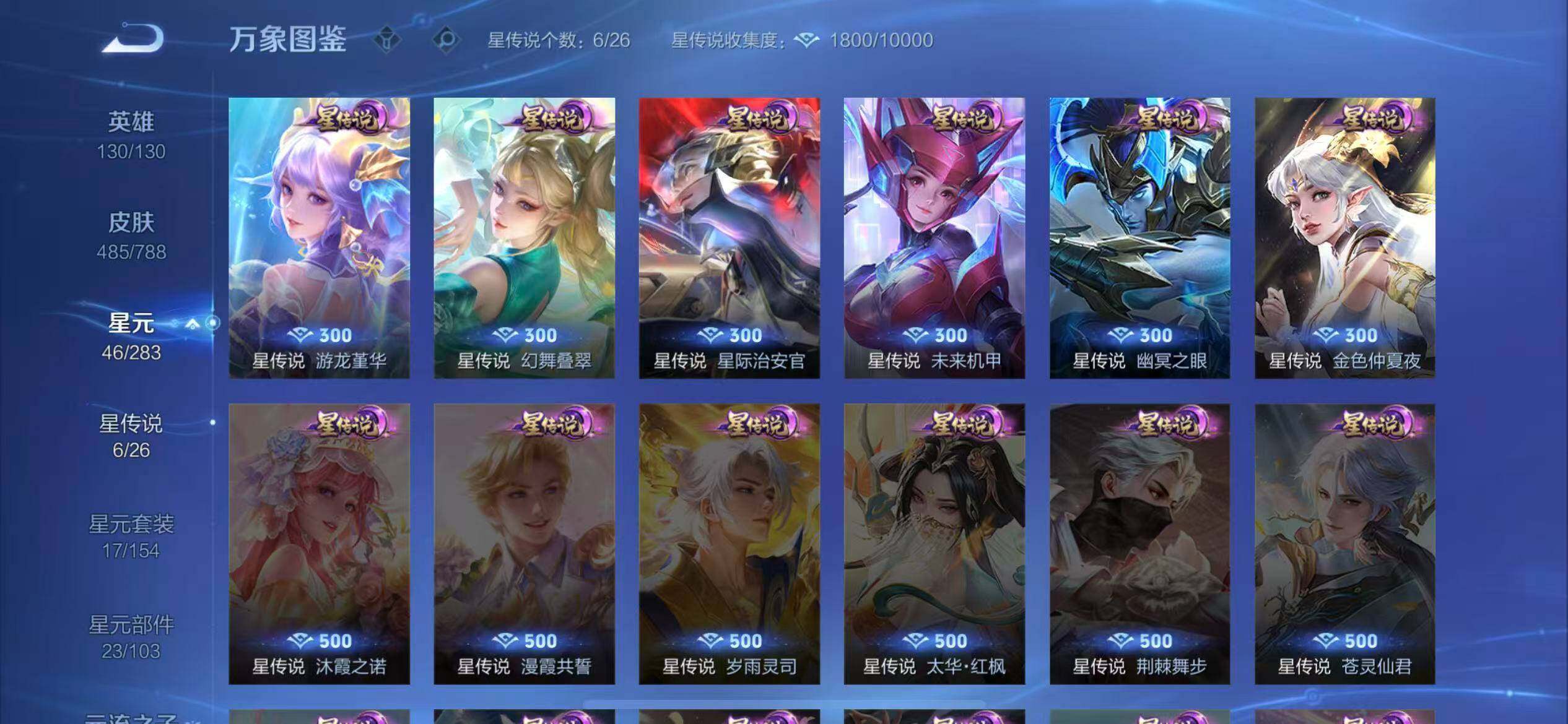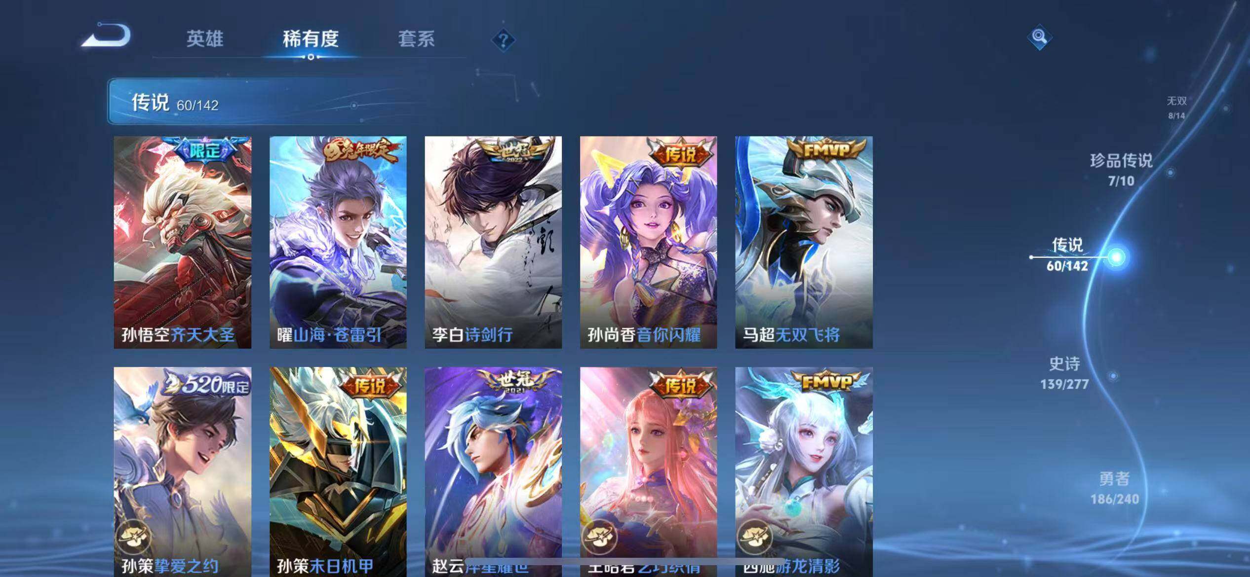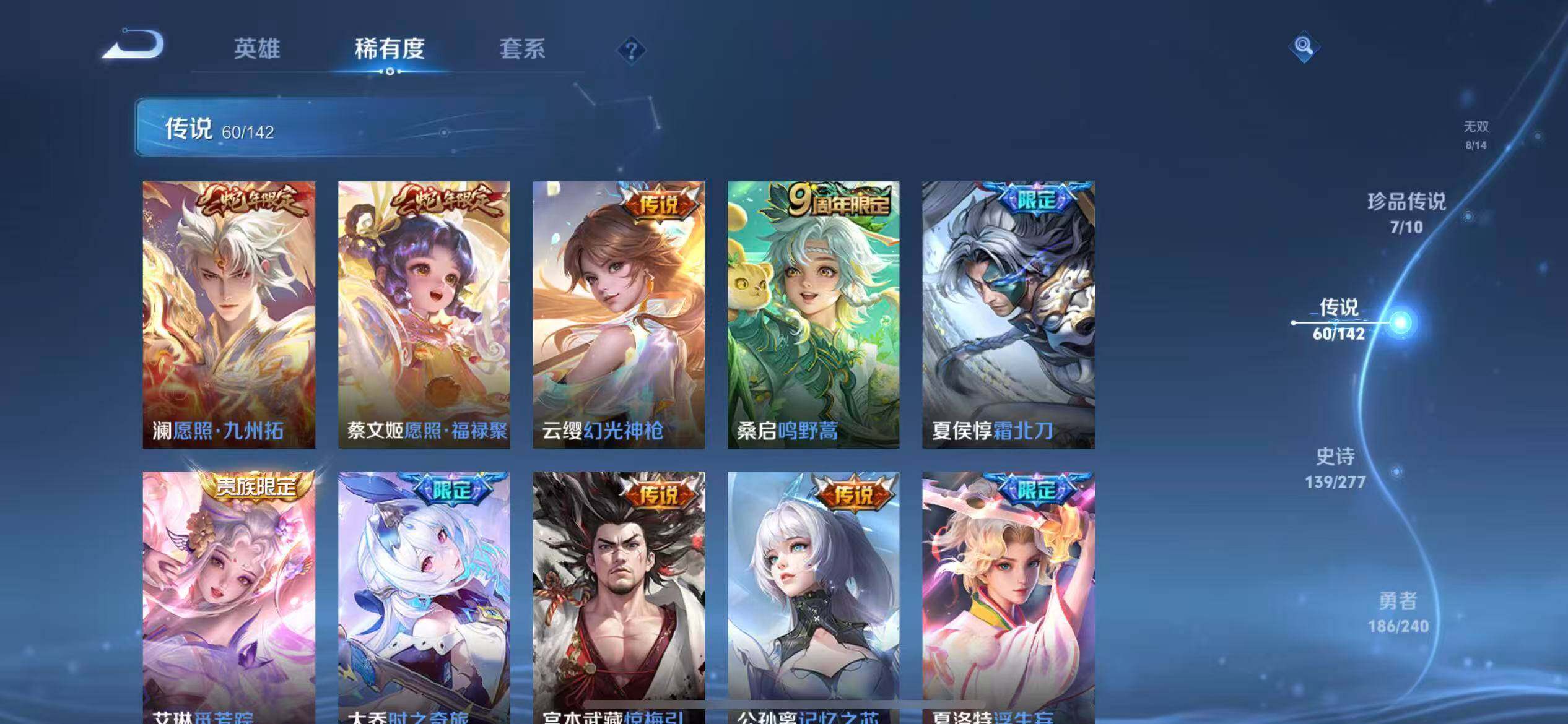 【8无双7珍品5典藏】V11-至尊星耀IV段位-130英雄-485皮肤-4典藏
