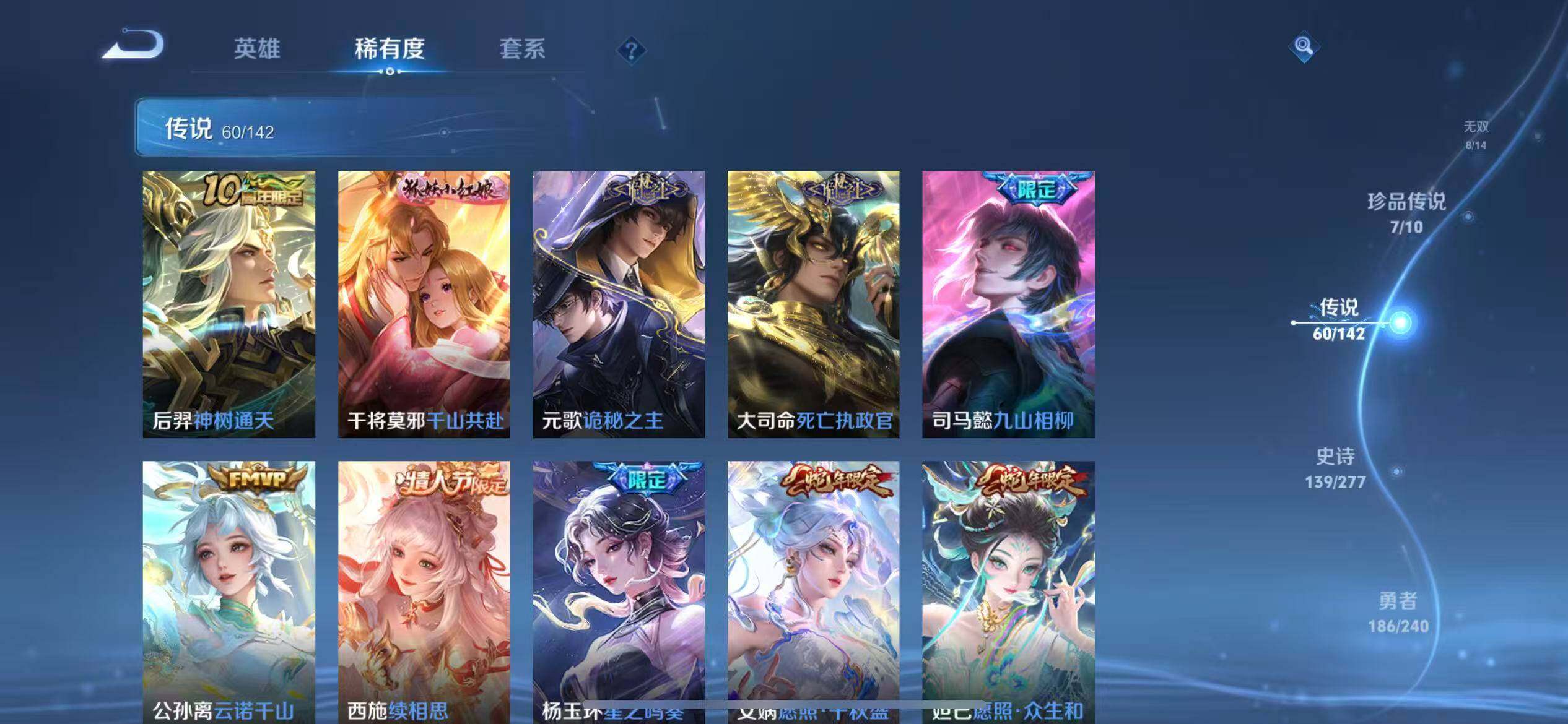 【8无双7珍品5典藏】V11-至尊星耀IV段位-130英雄-485皮肤-4典藏皮肤-1典藏英雄-8无双-7珍品传说-60传说-137史诗