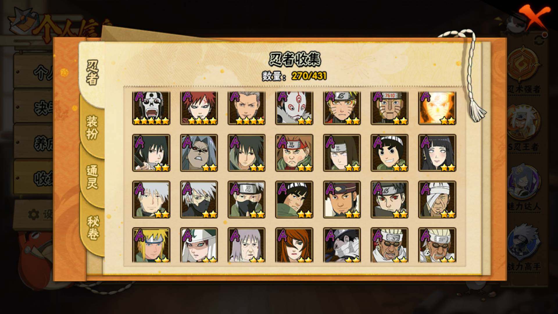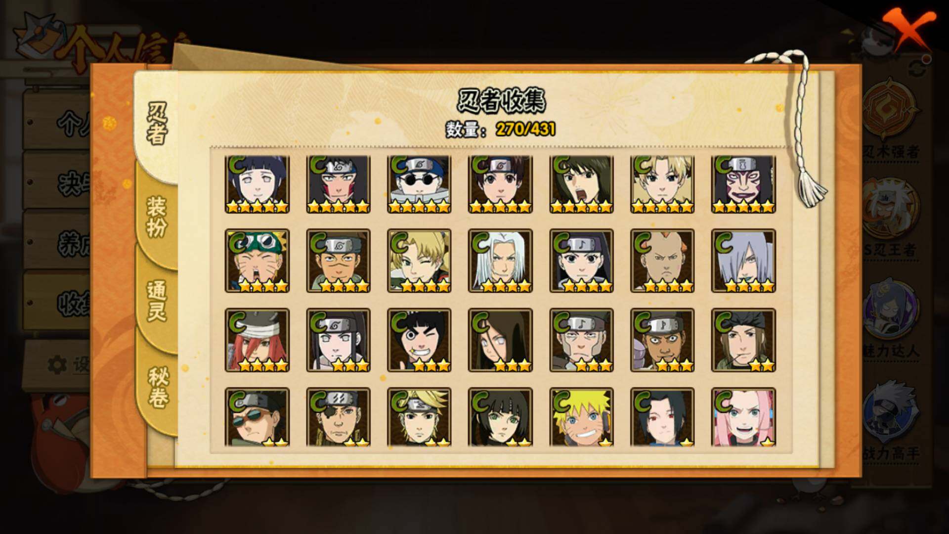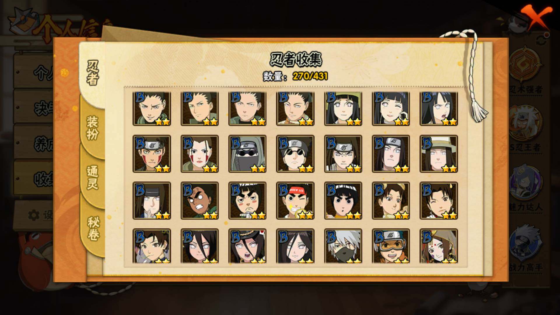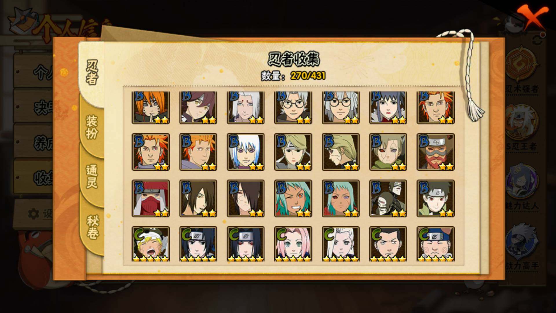 【S级忍者】:长门「秽土转生」(3星),半藏「秽土转生」(3星),波风水门「秽土转生」(3星),千手扉间「秽土转生」(3星