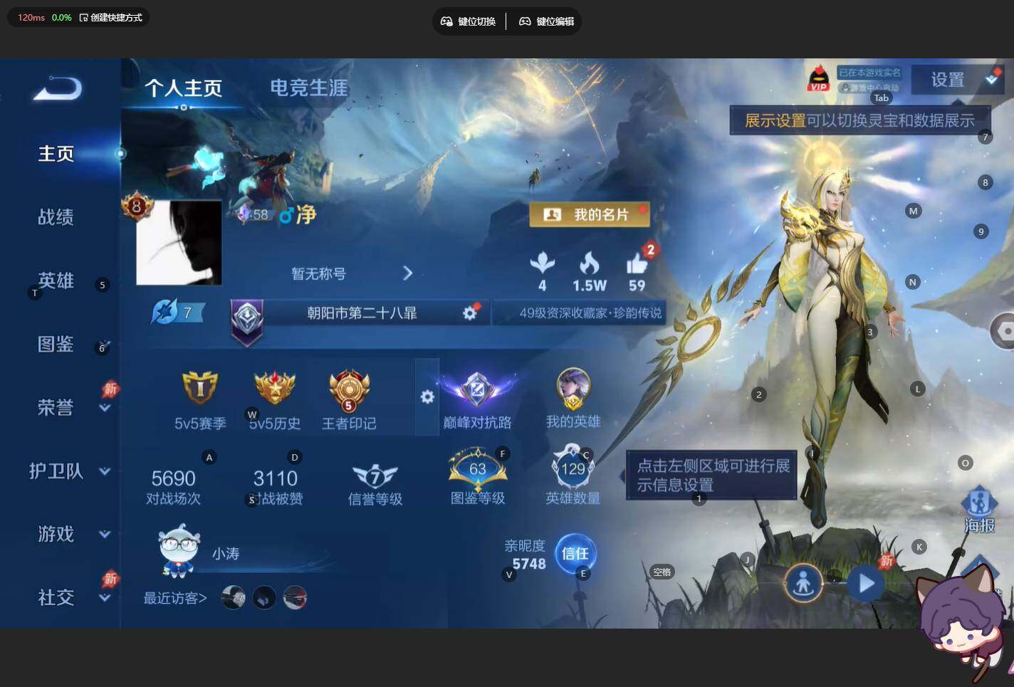 对抗路27段!金标镜!苹果Q-V8-至尊星耀I段位-129英雄-248皮肤-1典藏皮肤-2无双-1珍品传说-29传说-76史诗