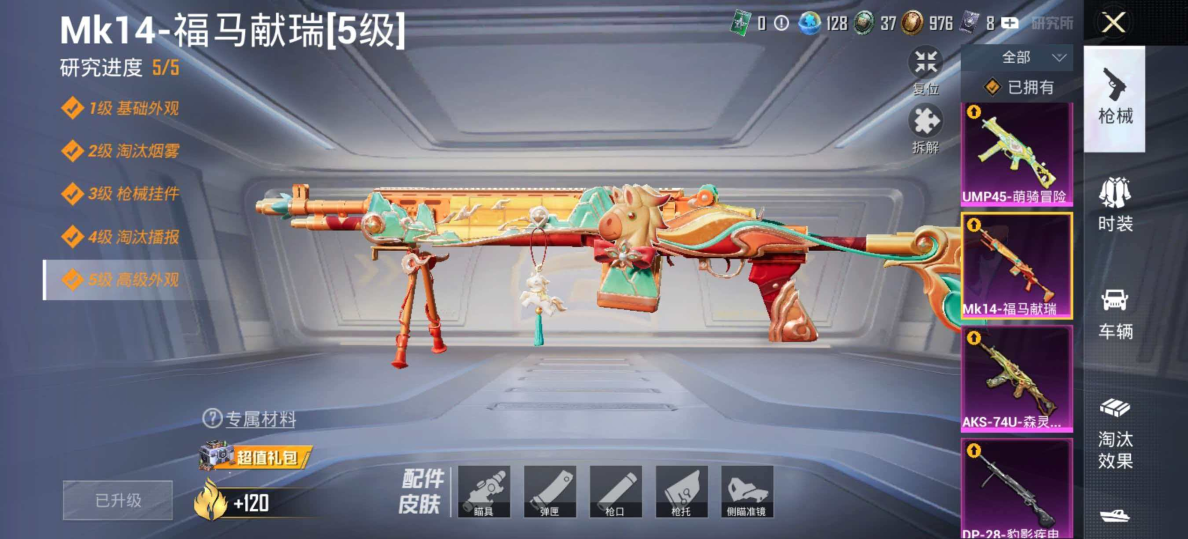 781-【星梦奇缘 3粉装7特效枪1载具】 安卓V区-46403热力值-110套装-170枪皮 【1载具】 霜月冰狼【2稀有】 派对舞王 派对舞王【金靴子】【3粉装】 鸢尾珑雾 创世·救赎 角色-荧海星豚【7特效枪】 Mk14-福马献瑞(5级) AKS-74U-森灵之息(5级) UMP45-萌骑冒险(1级) ACE32-萌骑漫游(3级) AUG-星梦奇缘(3级) Kar98K-巳巳如意(5级)