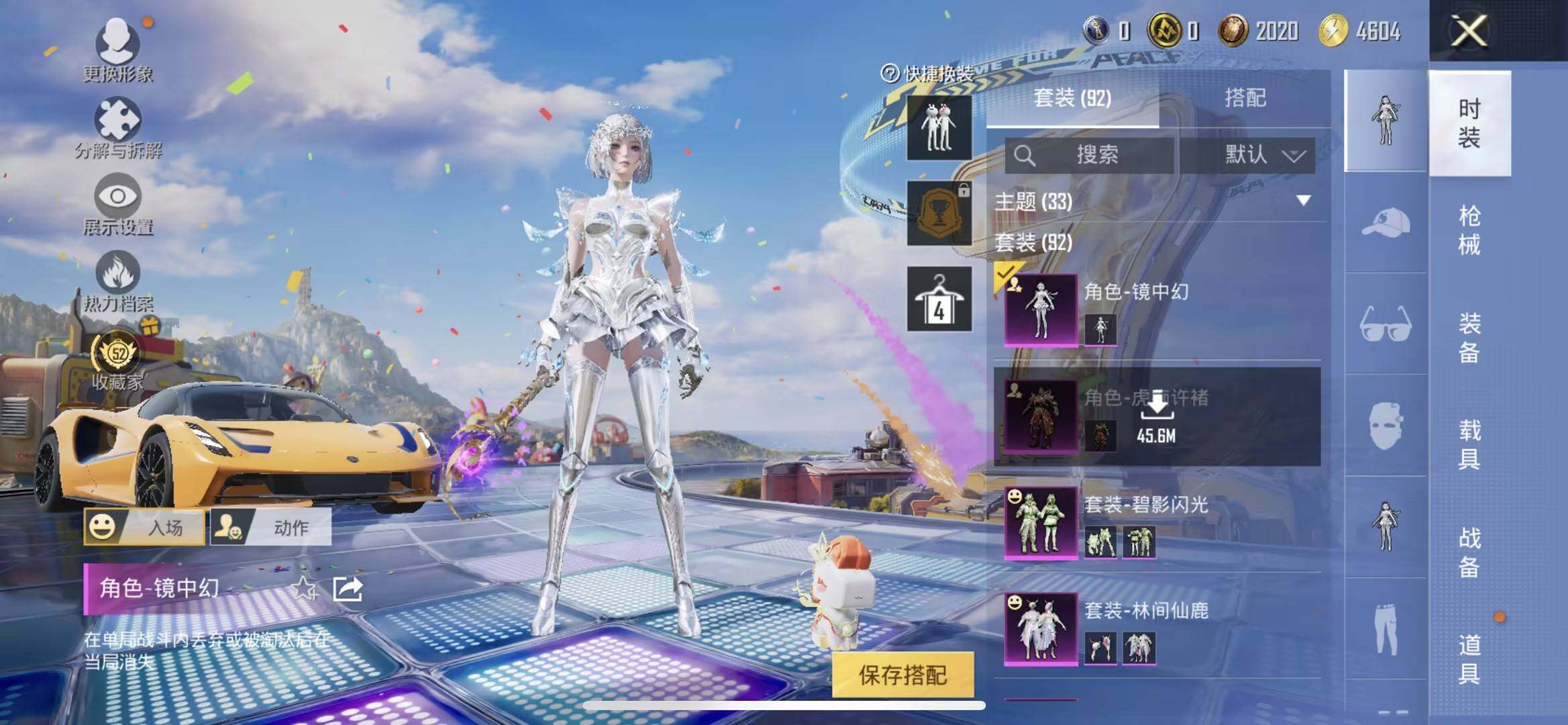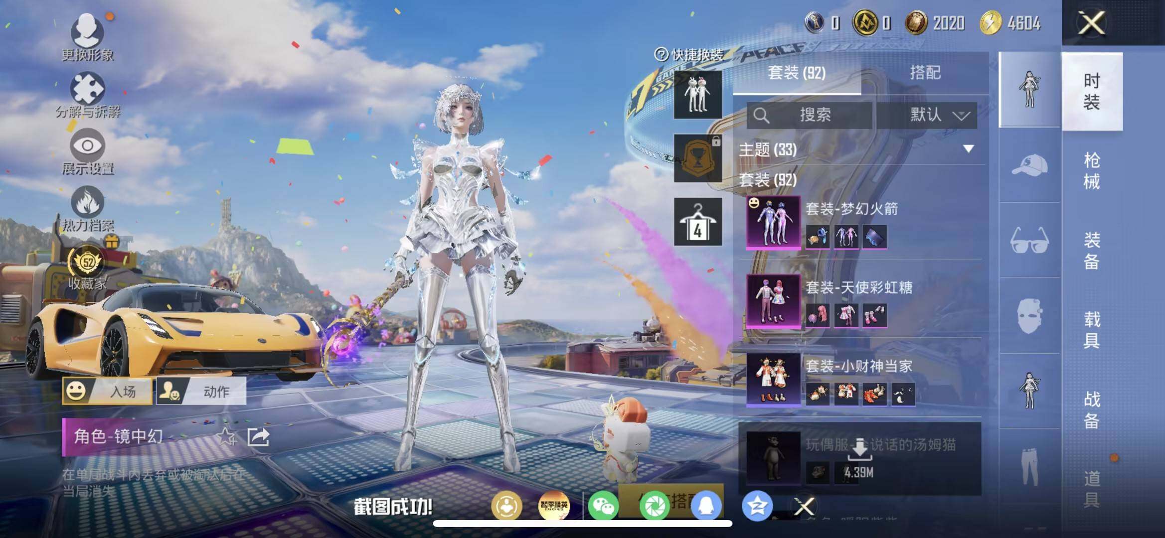 【粉色套装】:粉装-天使彩虹糖,粉装-梦幻火箭,粉装-林间仙鹿,粉装-碧影闪光,角色-镜中幻,角色-虎痴许褚