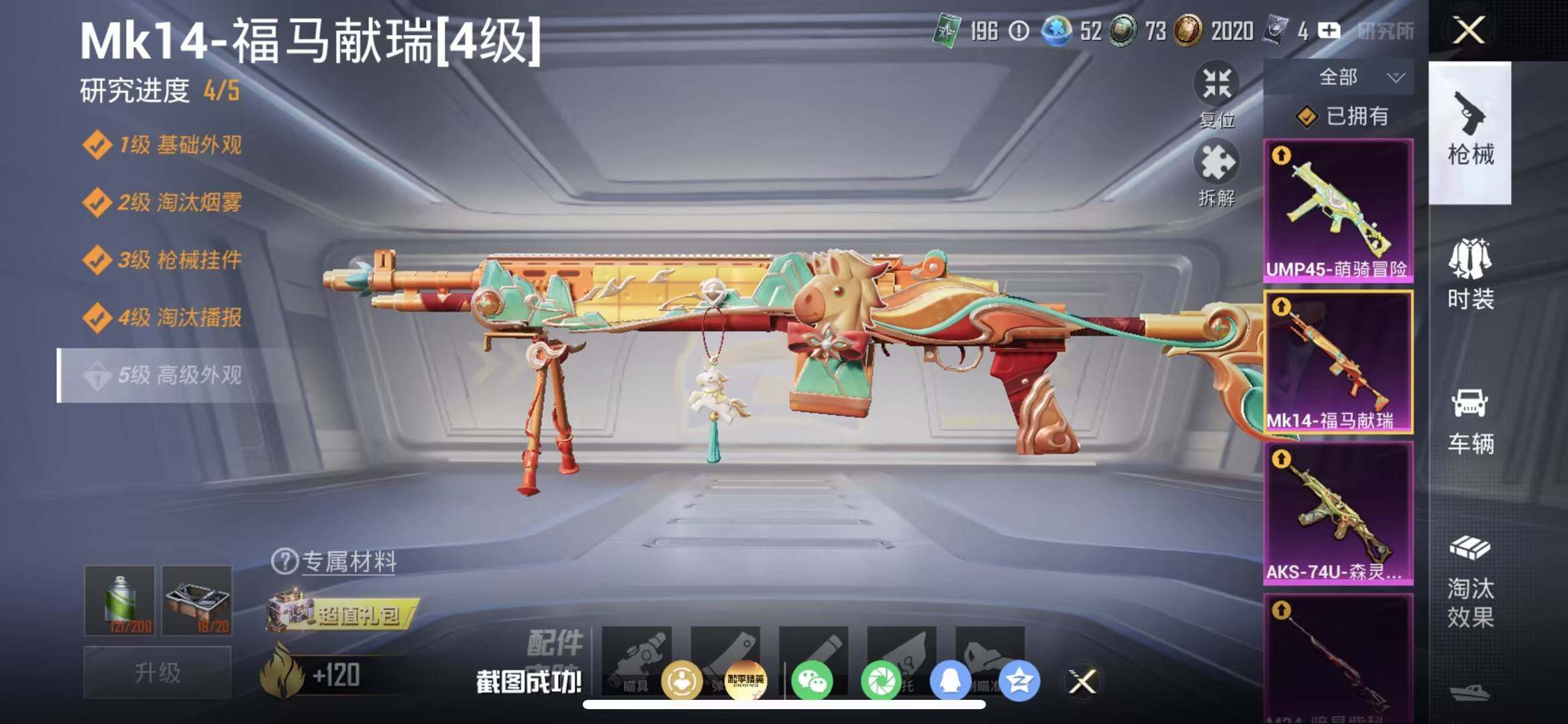 【粉色枪皮等级】:M416-风花雪月(六级),UMP45-萌骑冒