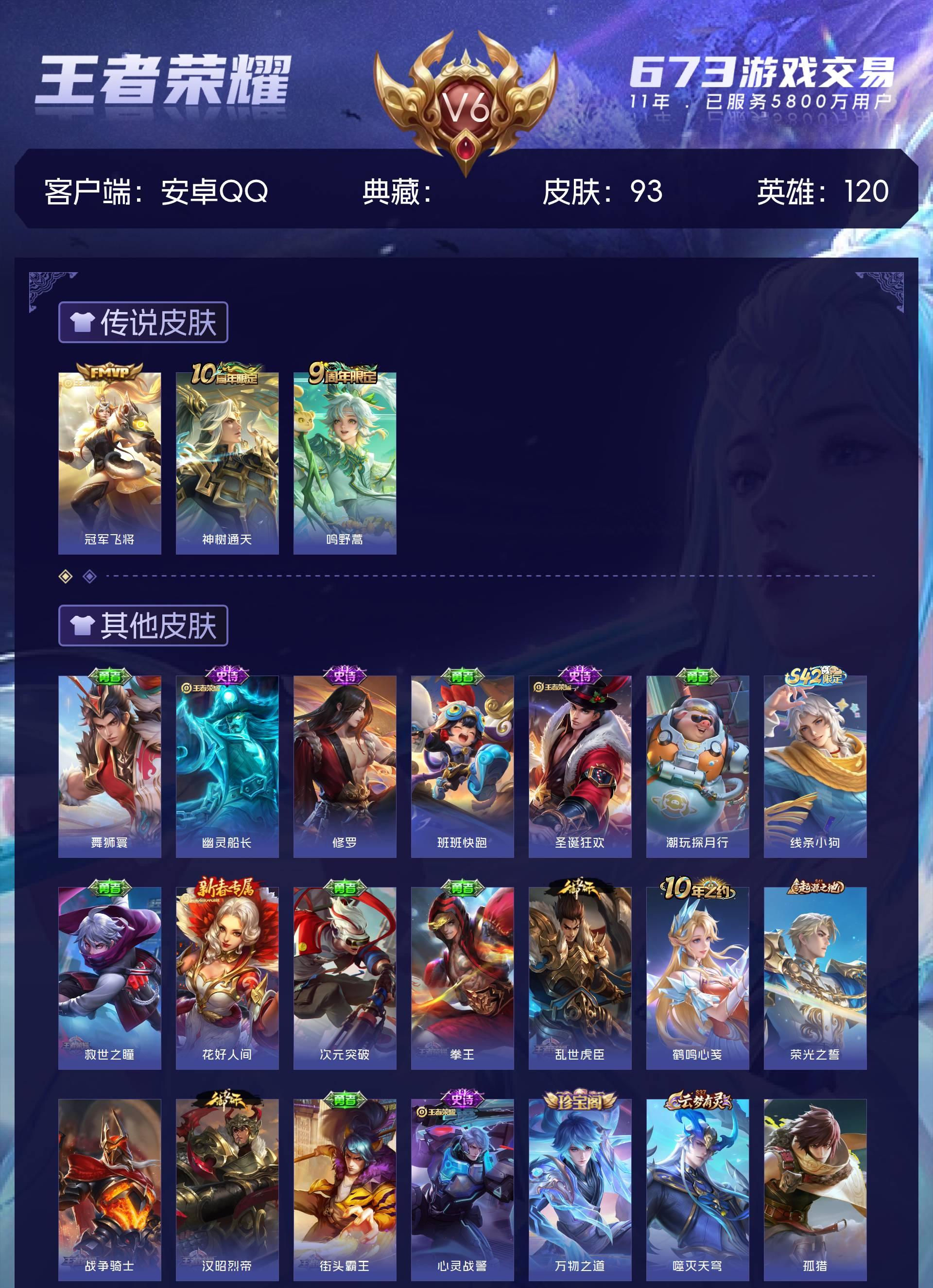 V6 皮肤93 英雄120 永恒钻石 传说3