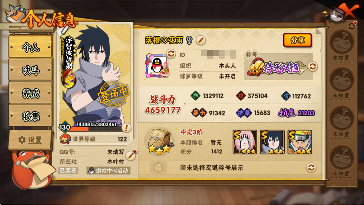 (可转苹果)465w战力紫狗秽土斑6s+鹰佐驹南共13A+2