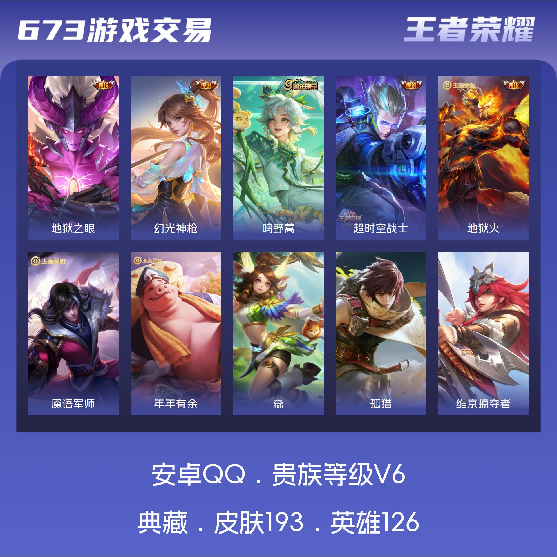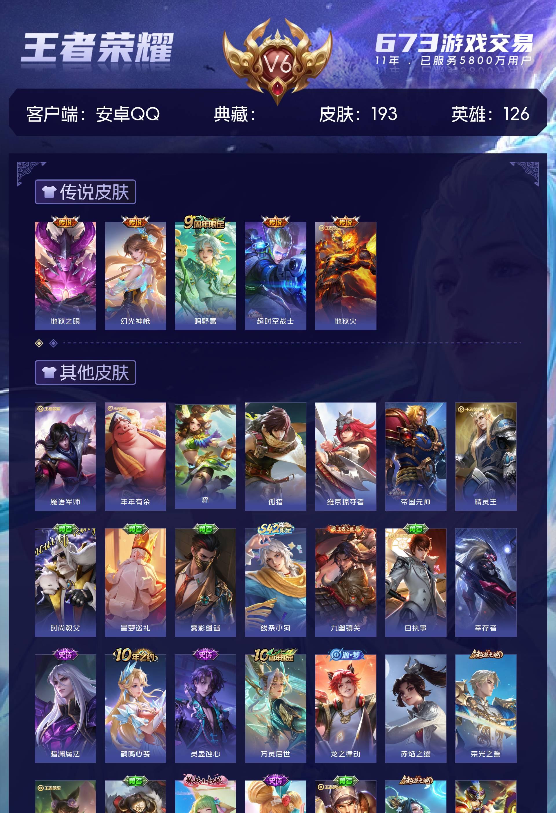 V6 皮肤193 英雄126 尊贵铂金 传说5