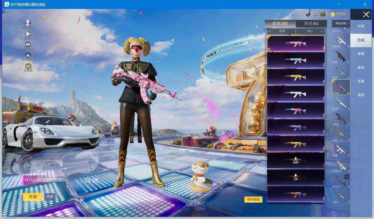 时装数: 828 载具数: 3 枪械数: 318 战备数: 204 热门装扮: 奇异狩猎者,梦幻火箭(新101),蝶舞迷情,甜心巧克力,怪诞乔克,深海小丑鱼,宝贝奶油派,浪漫波比,天使彩虹糖,鹰眼刺客,甜蜜誓约,都市猎人,PEL轰鸣竞梦者,极致幻想,银刃赛罗,绮梦青鸾,星之彼岸,沙漠守护者,潮萌小黄鸭,激萌罗小黑,软萌银虎,神秘黑猫,宁雨蝶,荧海星豚,花灵,虹云熊熊 载具: 玛莎拉蒂Ghibli
