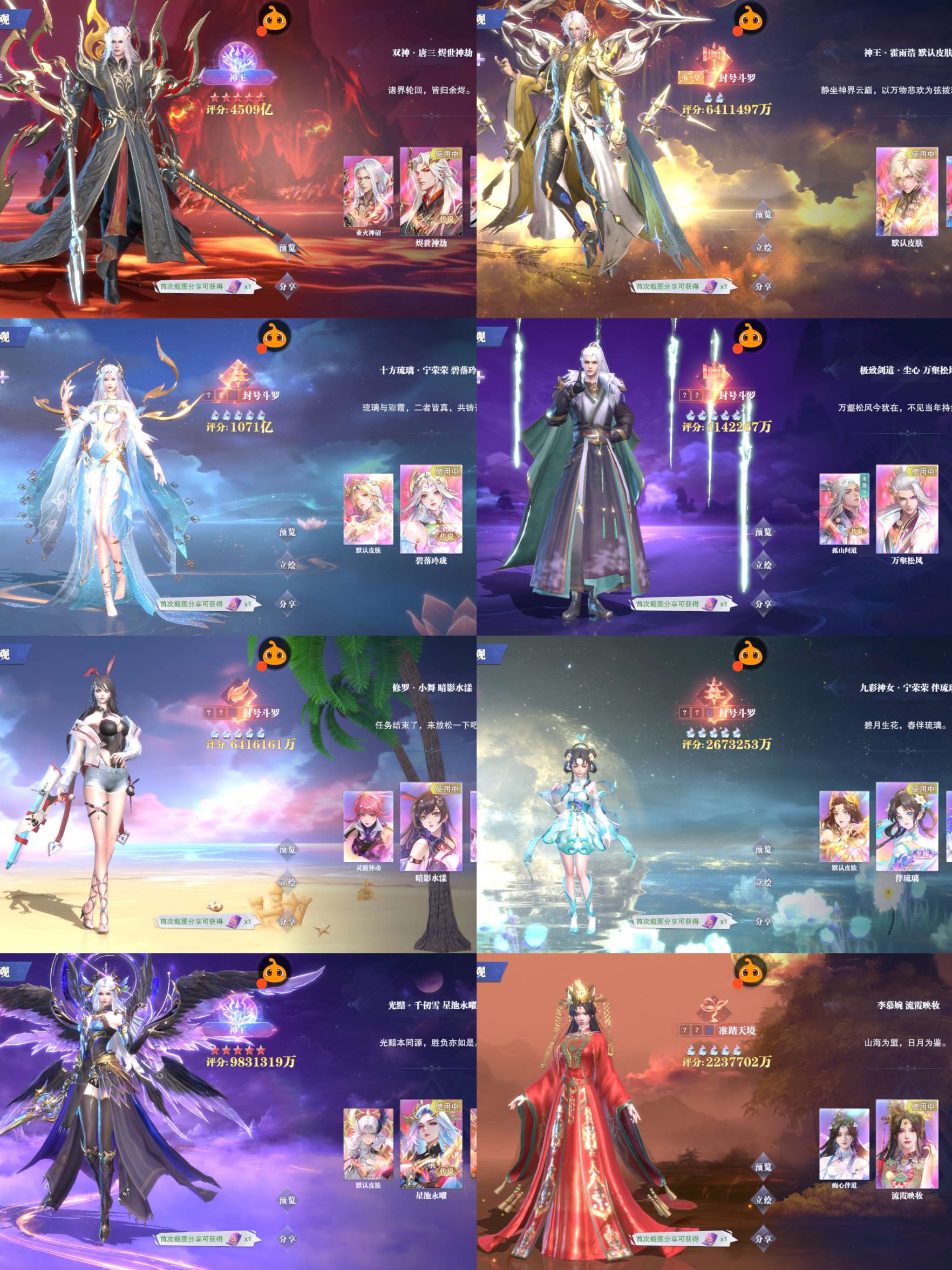 1.53万亿战力。御统供奉。彩2神王霍雨浩全图31sp。148抽4千钻石。彩5大荣 剑仙。传说双神