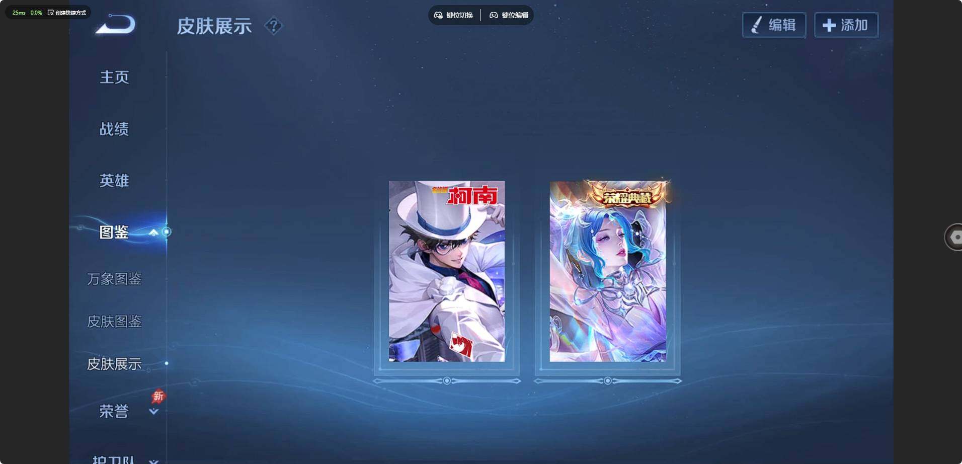 30/实名: 可修改 贵族等级: V6 英雄数: 126 皮肤数: 120 荣耀水晶: 幻阙歌 珍品传说: 怪盗基德 传说皮: 山海·炽霜斩,澜逐花归海,幻光神枪 限定皮: 梁祝,寅虎·展翼,五谷丰年,山海·玄木吟,齐天大圣,鸣野蒿,愿照·岁时盈