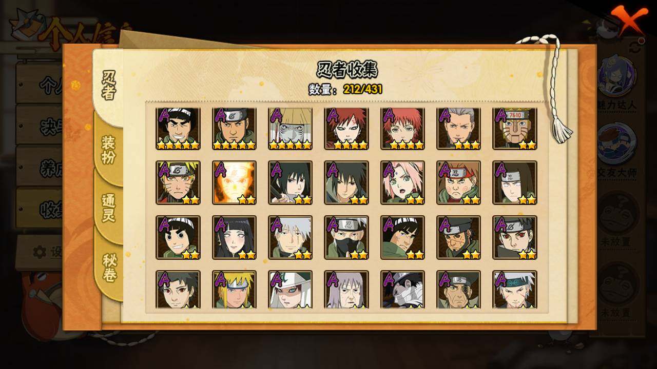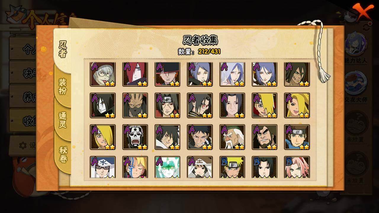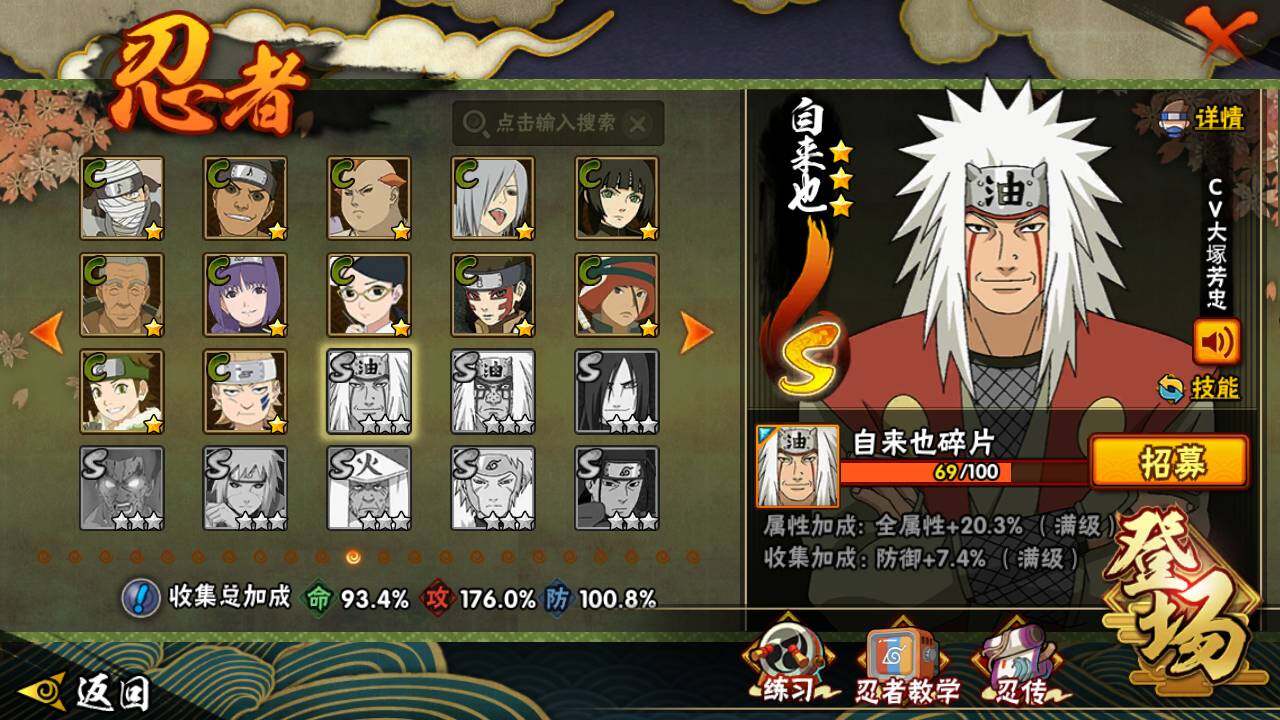 【S级忍者】:猿飞日斩「秽土转生」(3星),千手扉间「秽土转生」(3星),宇智波斑「秽土转生」(3星),宇智波斑「秽土转生·解」(3星),大野木「忍界大战」(3星),春野樱「忍界大战」(3星),艾「忍界大战」(3星),宇智波鼬「须佐能乎」(3星),宇智波止水「须佐能乎」(3星),旗木卡卡西「