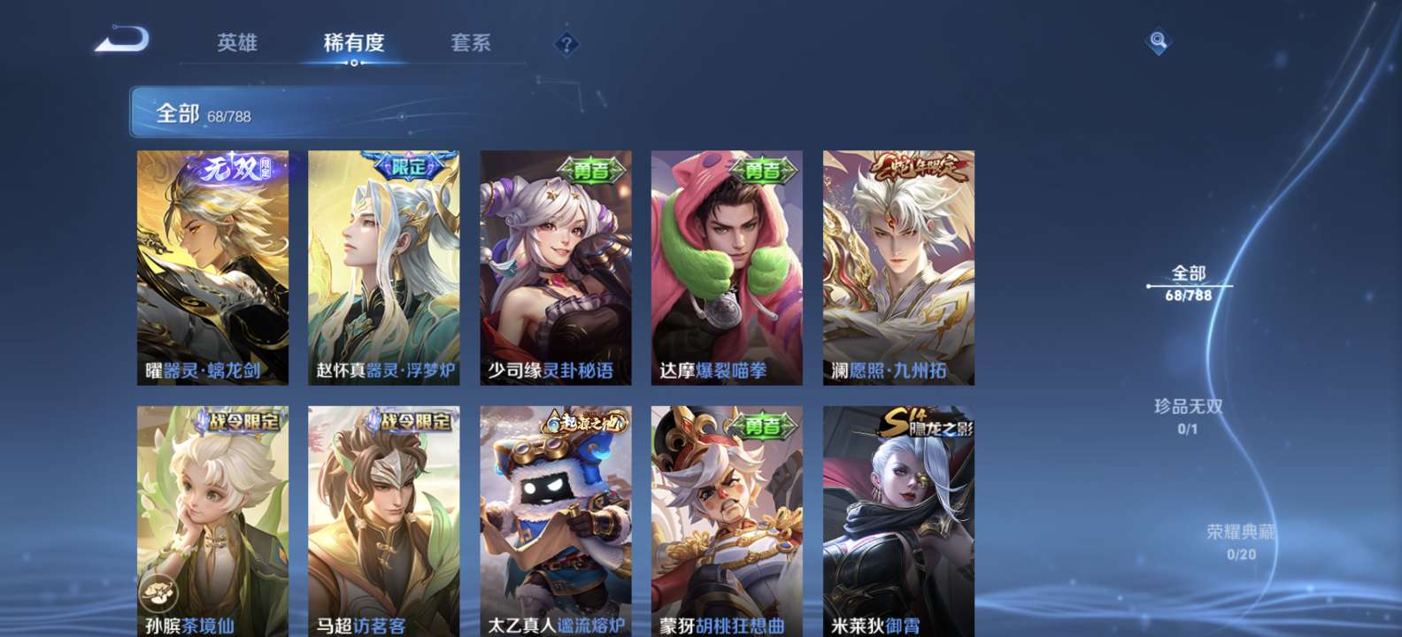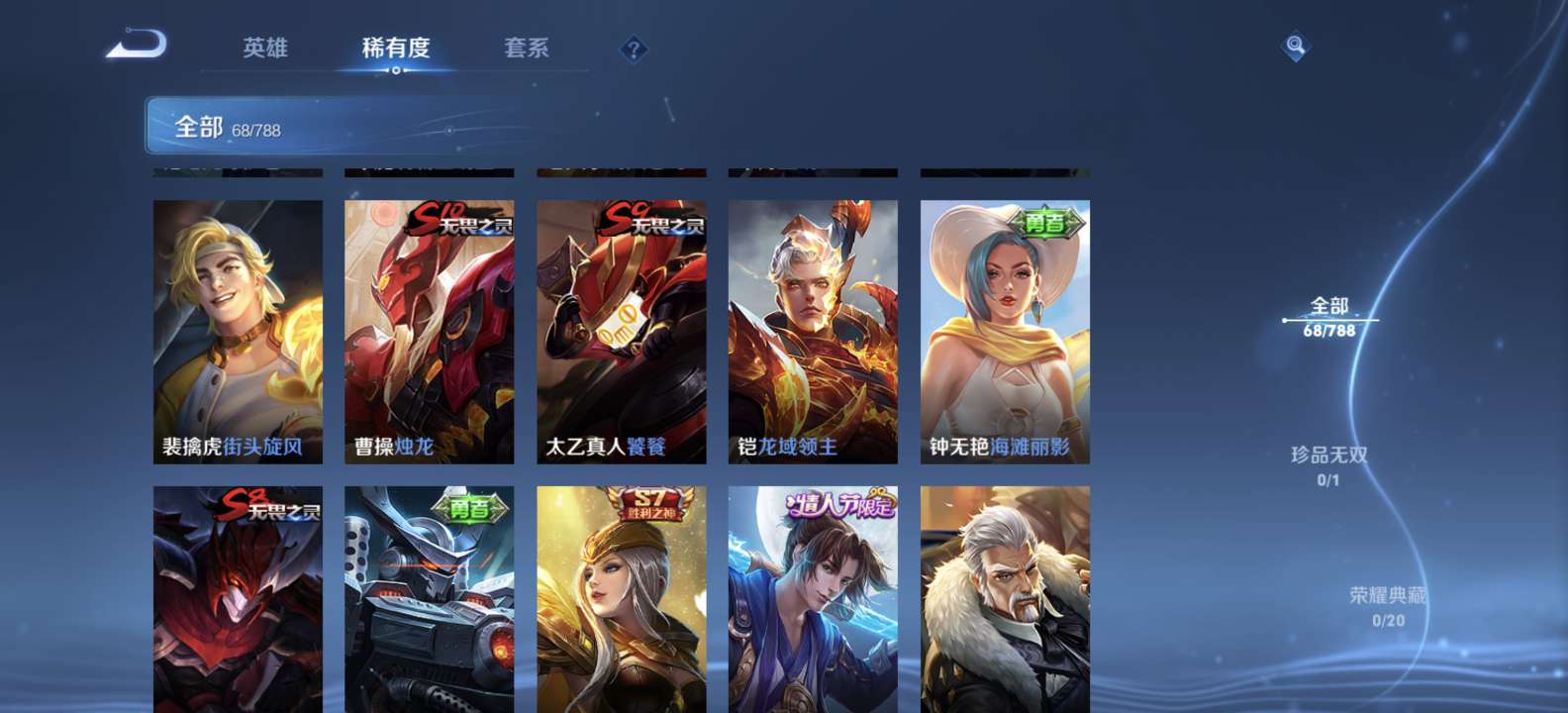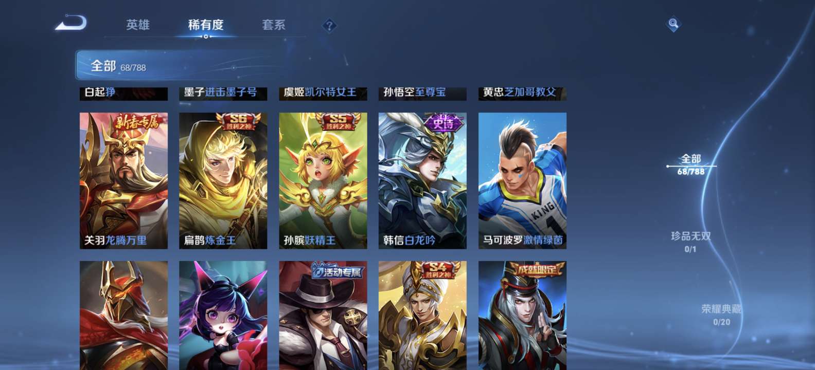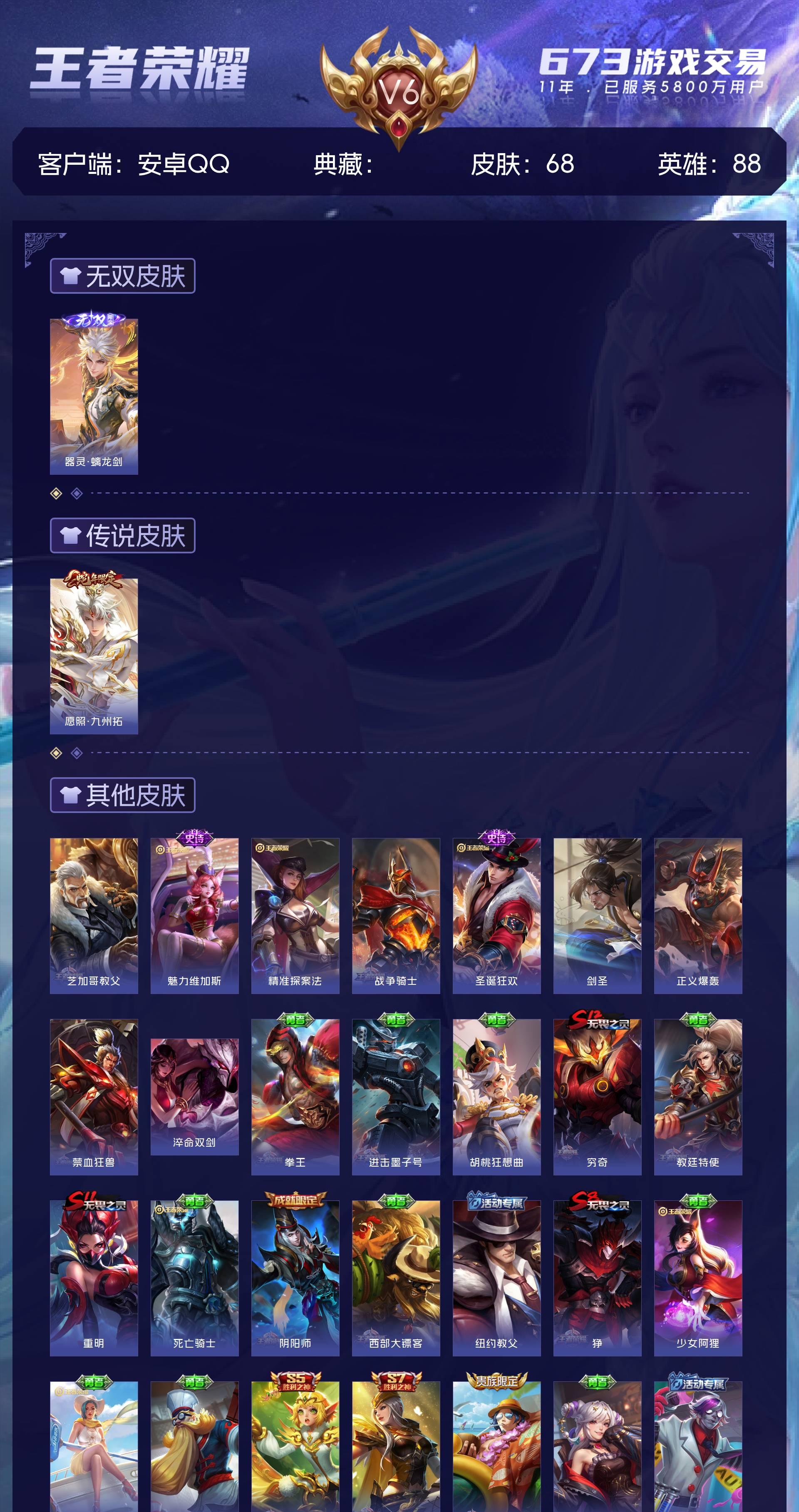 V6 皮肤68 英雄88 荣耀黄金 无双皮肤1 传说1