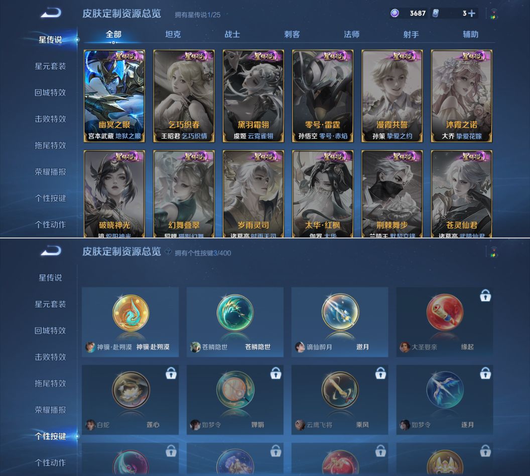 【星传说】幽冥之眼【传说皮肤】 鸣野蒿 逐花归海 曦玄引 神骥·赴朔漠 愿照·山河定 黄金狮子座 地狱之眼 炽阳神光 胖达荣荣 末日机甲 云鹰飞将