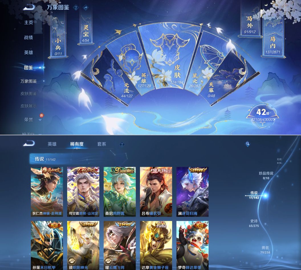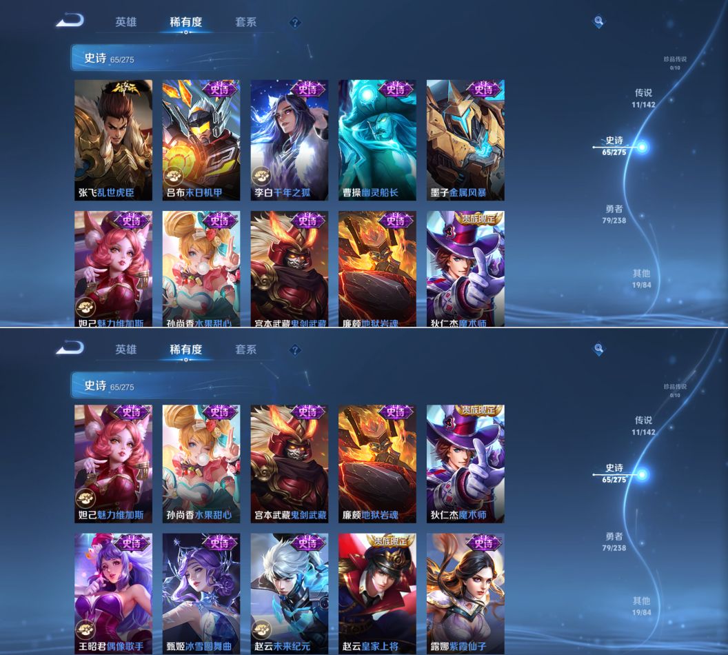 【史诗皮肤】 星界战将 百相守梦 炽弈燎原 决胜骁骑 苍鳞隐世 傲雪梅枪 器灵·浮梦炉 决胜骁骑 龙之律动 地狱燃心 线条小狗 谪仙醉月 线条小狗 山海·玄木吟 怒海争锋 夏日便利店 琥珀纪元 王牌新星 聚星闪耀 江河有灵 幻夜行动 决胜大满贯 百解令 荣光圣