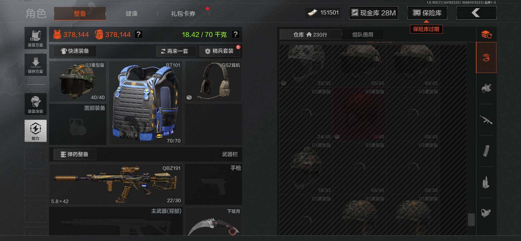 【近战武器】:工兵铲,下弦月,急袭弯刀,热能武器补牢,苍穹利爪,空腔战术,百炼恒常