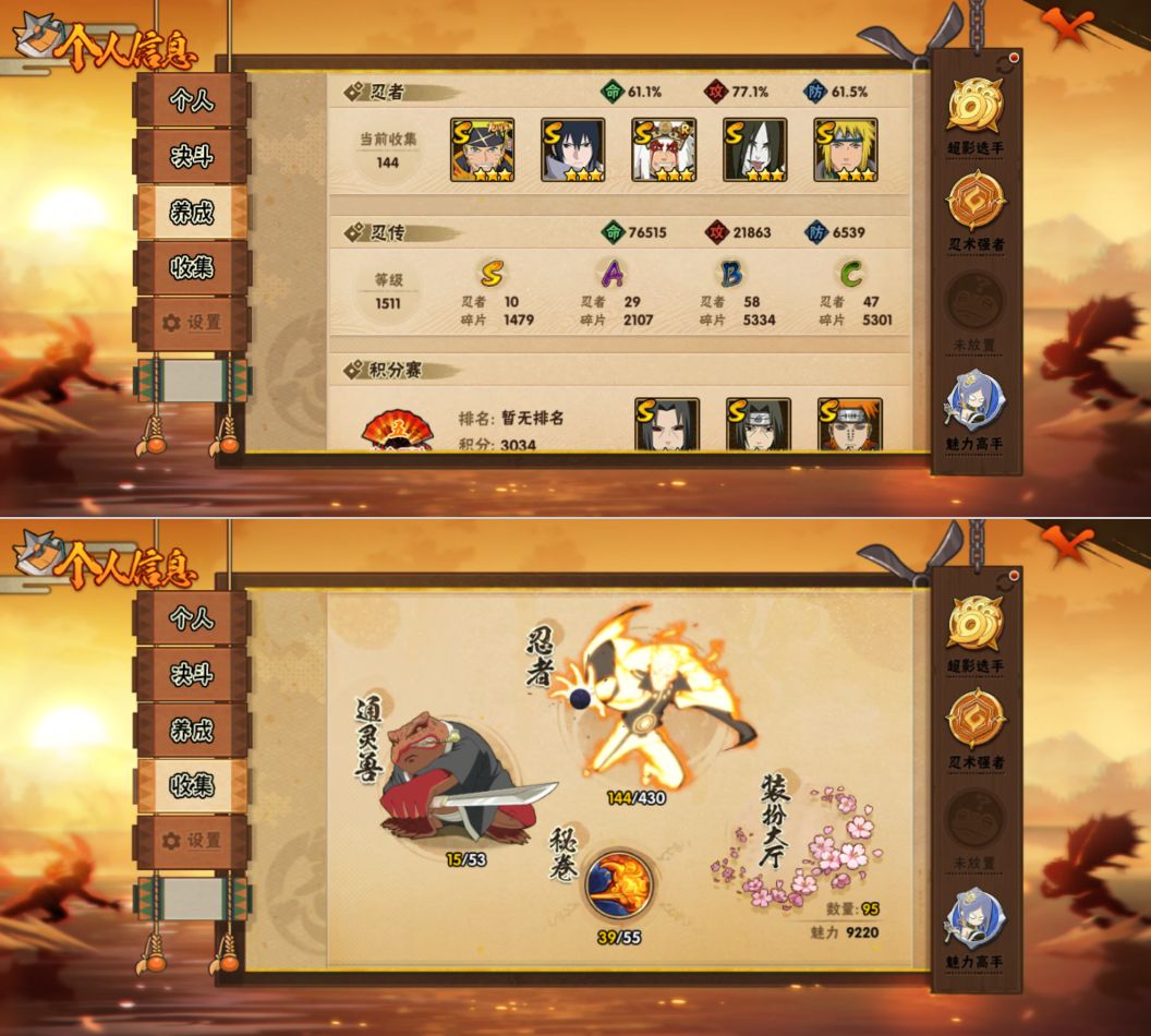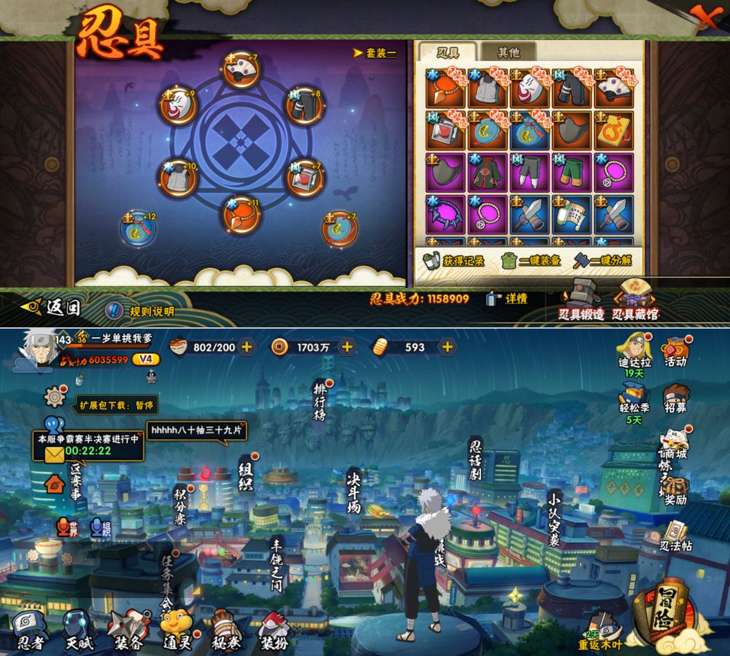 WLHY582【可二次 S忍者10 A忍者29 通灵15 安卓Q-2434区-143级-V4-603万战力】【S级】千手扉间「秽土转生」 宇智波鼬「秽土转生」 大蛇丸 波风水门 宇智波佐助「永恒万花筒」 漩涡鸣人·宇智波佐助 佩恩「天道」 自来也「舞之豪杰」 宇智波鼬「须佐能乎」 宇智波斑「秽土转生·解」【A级】秋道丁次「忍界大战」 日向宁次「忍界大战」 迪达拉「秽土转生」 蝎 干柿鬼鲛 飞段 漩涡鸣人「仙人模式」 漩涡博人「桃式显现」 旗木卡卡西「神威对决」 长门「青年」 不缘 奇拉比 宇智波