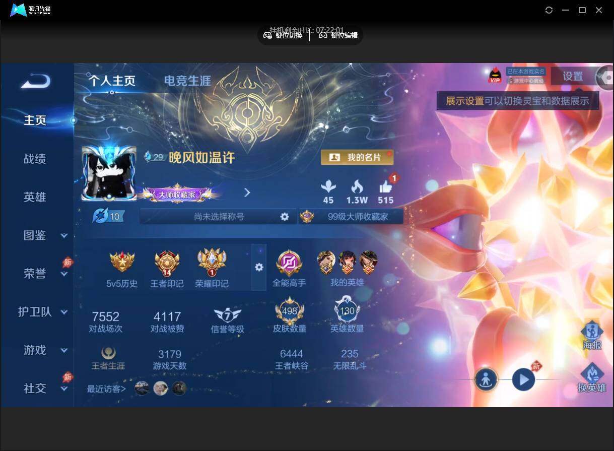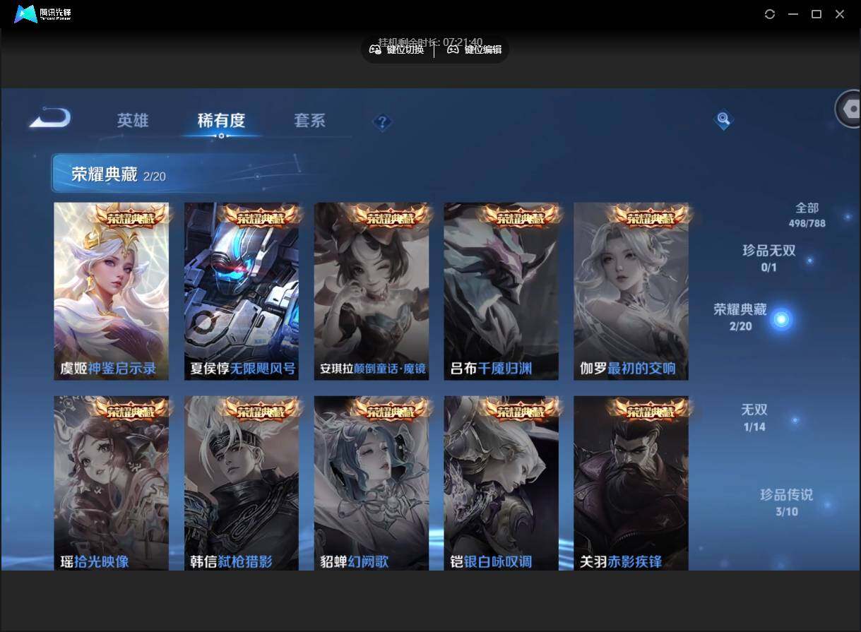 【W7086】【满蛇年】营地ID:526481734【爆款臻稀皮肤:离恨烟-无限飓风号-神鉴启示录-武则天-酷洛米之心-愿照千秋盛-愿照福禄聚-愿照山河定-愿照岁时盈-愿照众生和-愿照九州拓-启明星使-天魔缭乱-挚爱之约-鹤羽星尊】可二次-贵9-130英雄-498皮肤-3典藏-1无双-3珍品-5星元-40传说-35按键-贵族积分16w