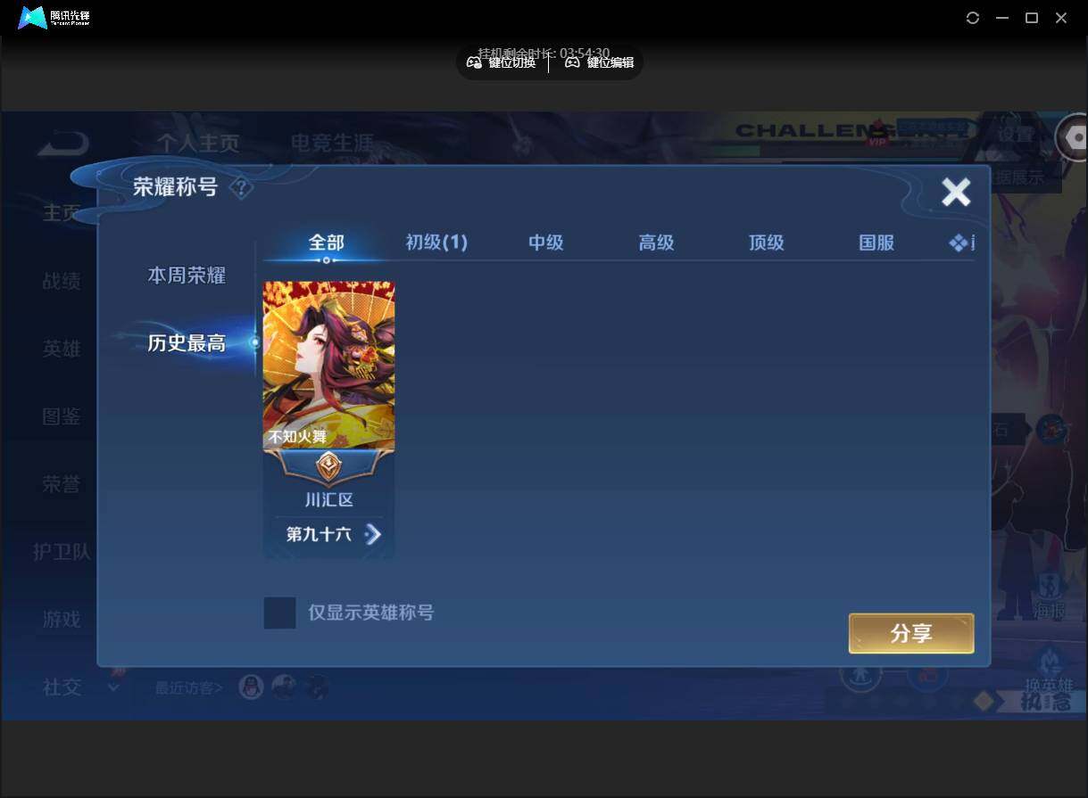 【W7099】【277低场次开局号】营地ID:1547028380【爆款臻稀皮肤:花合斗-神骥越千峰-地狱之眼】不可二次-贵5-22英雄-19皮肤-1无双-2传说-2按键-贵族积分6.3k