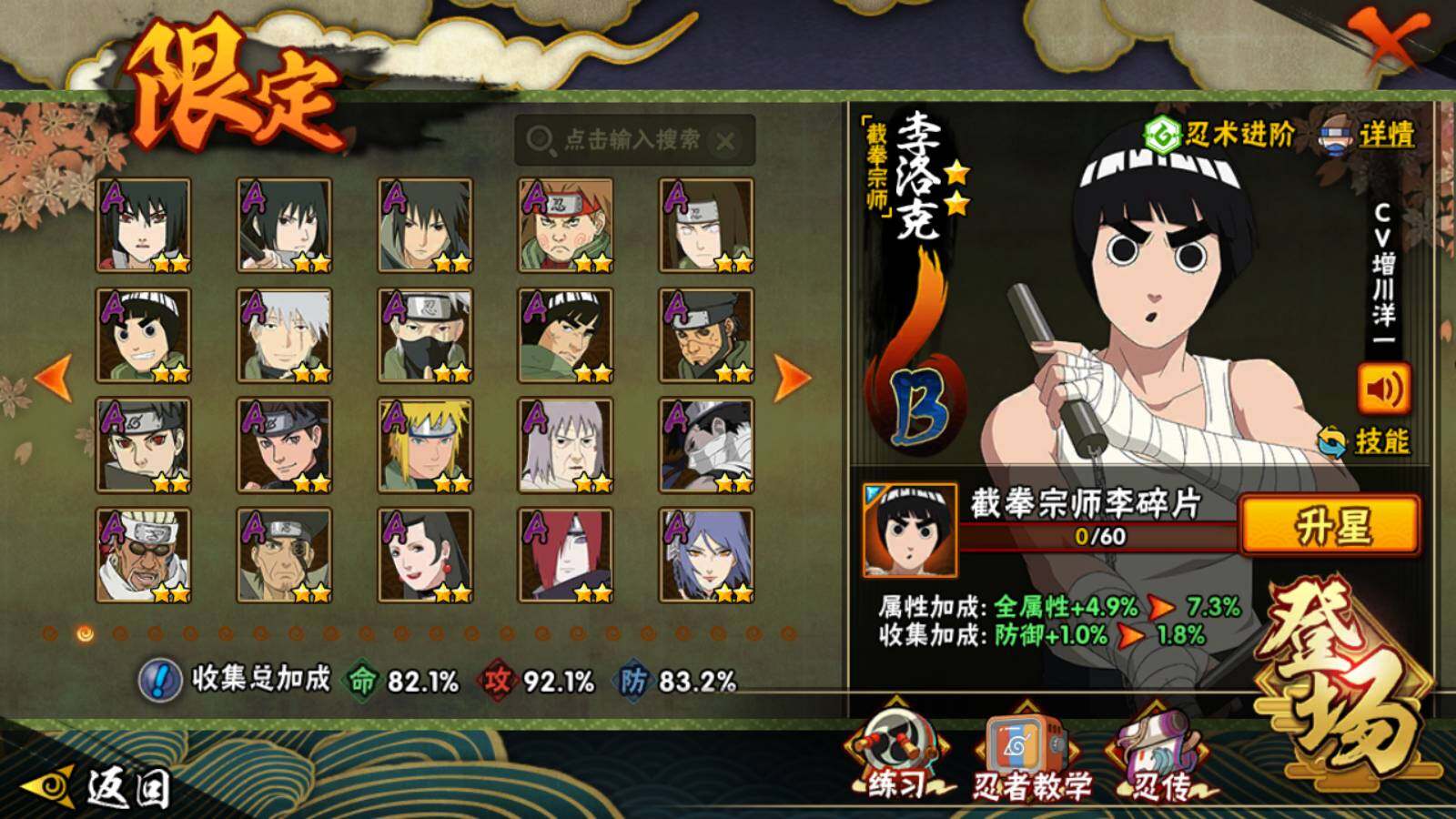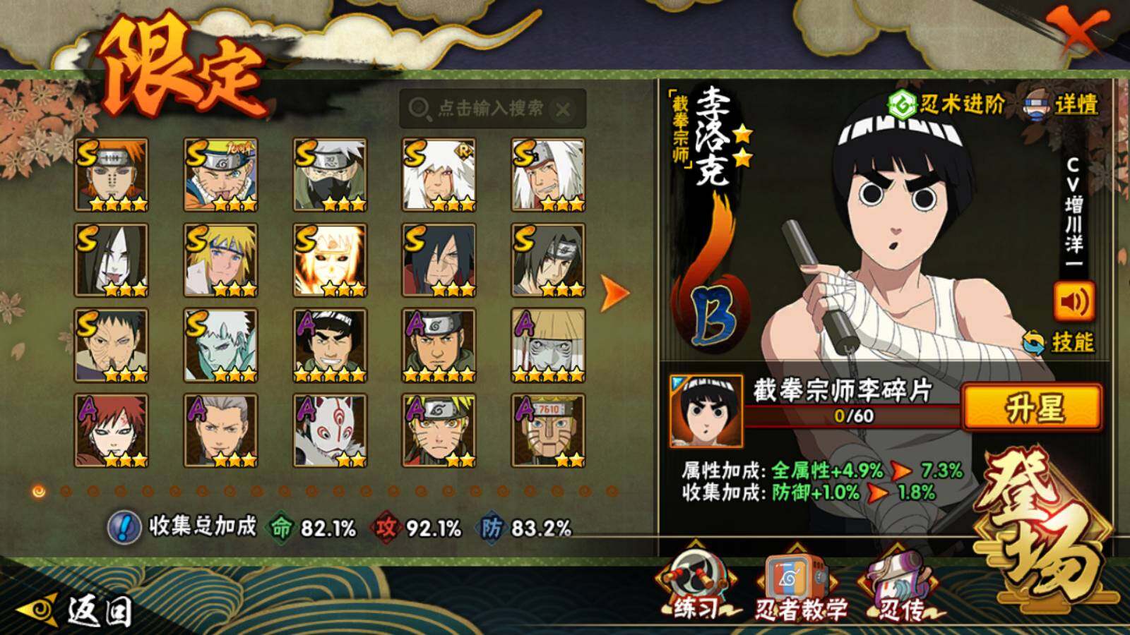 VIP等级V5/战力800W/S忍数量12/A忍数量37/3