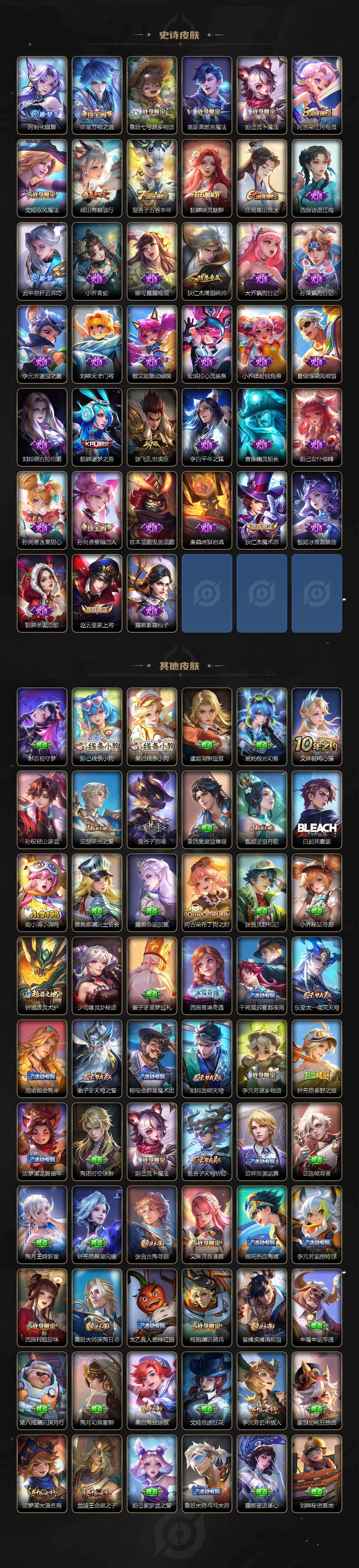 贵族等级7/荣耀典藏数量1/传说皮肤数量9/史诗皮肤数量42/皮肤数量180/英雄数量128/段位永恒钻石/孙权全皮/幻阙歌 貂蝉/神树通天 后羿/鸣野蒿 桑启/曦玄引 貂蝉/时之奇旅 大乔/记忆之芯 公孙离/游龙清影 西施/猫影幻舞 貂蝉/云霓雀翎 虞姬/仲夏夜之梦 貂蝉/天穹之誓 姜子牙/阴阳师 狄仁杰/皇家上将 赵云/蔷薇恋人 孙尚香/高山流水 庄周/魔术师 狄仁杰/海滩派对 项羽/逐梦