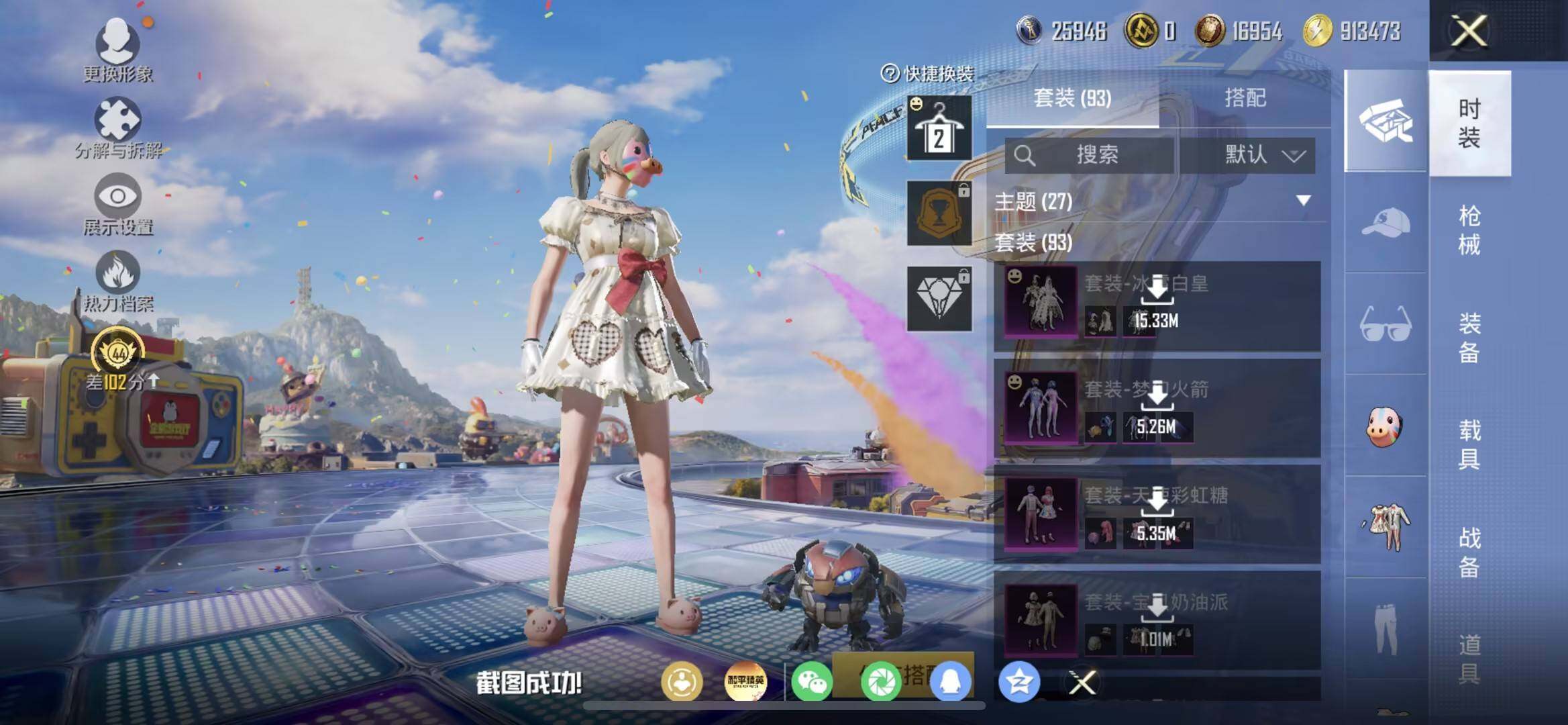 【HP4451】93套装/枪械2/装备103/战备78/王牌印记7/热力值34301/七级M416-五爪金龙/五级Kar98K-巳巳如意/粉装-梦幻火箭/粉装-童趣迷兔/粉装-缤纷油彩/套装-胖达团团/套装-胖达圆圆/套装-龟仙人/套装-暗影哥特/粉装-宝贝奶油派/粉装-天使彩虹糖/粉装-冰霜白皇/粉装-彩虹甜喵/粉装-仲夏莫吉托/角色-呆萌星弥/角色-小可学妹/M416-五爪金龙/Kar98K-巳巳如意/童趣迷兔降落伞/相思残雪降落伞/垂柳戏鸭降落伞/太空嘟嘟降落伞/彩虹甜喵降落伞/第五大道降