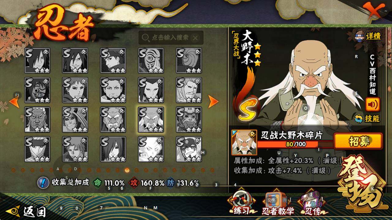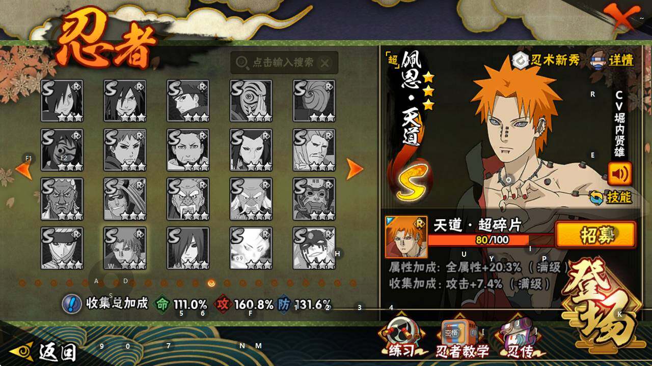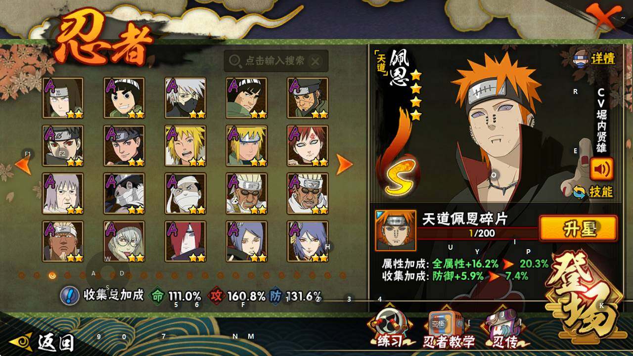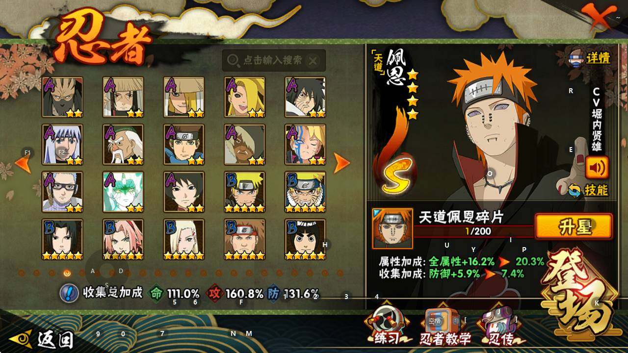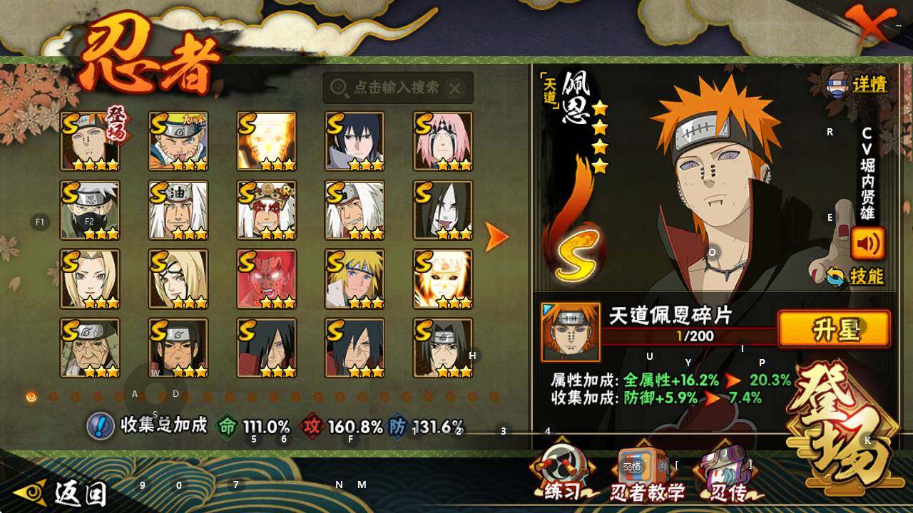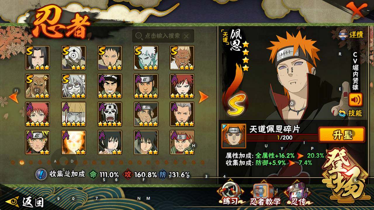 VIP等级V10/战力1775W/S忍数量27/A忍数量46/
