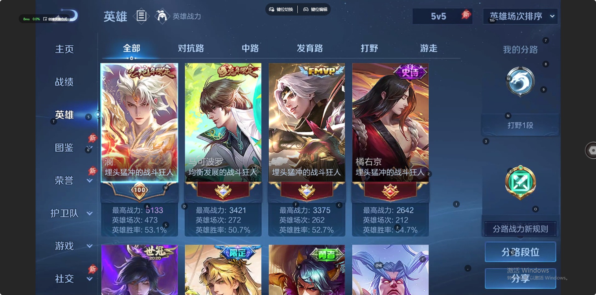 []V7 1典藏 13传说 127英雄 183皮肤 可修改实名 男号