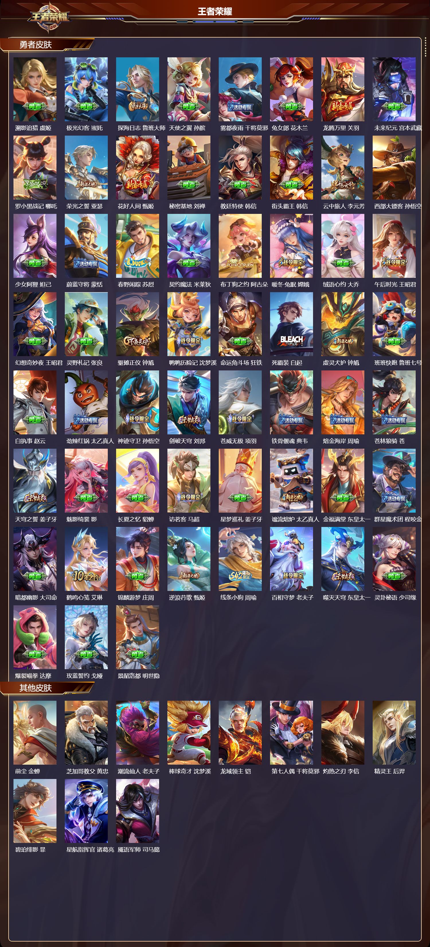 安卓QQ/永恒钻石/232皮肤/129英雄/2典藏/0珍品无双/1无双/3珍品传