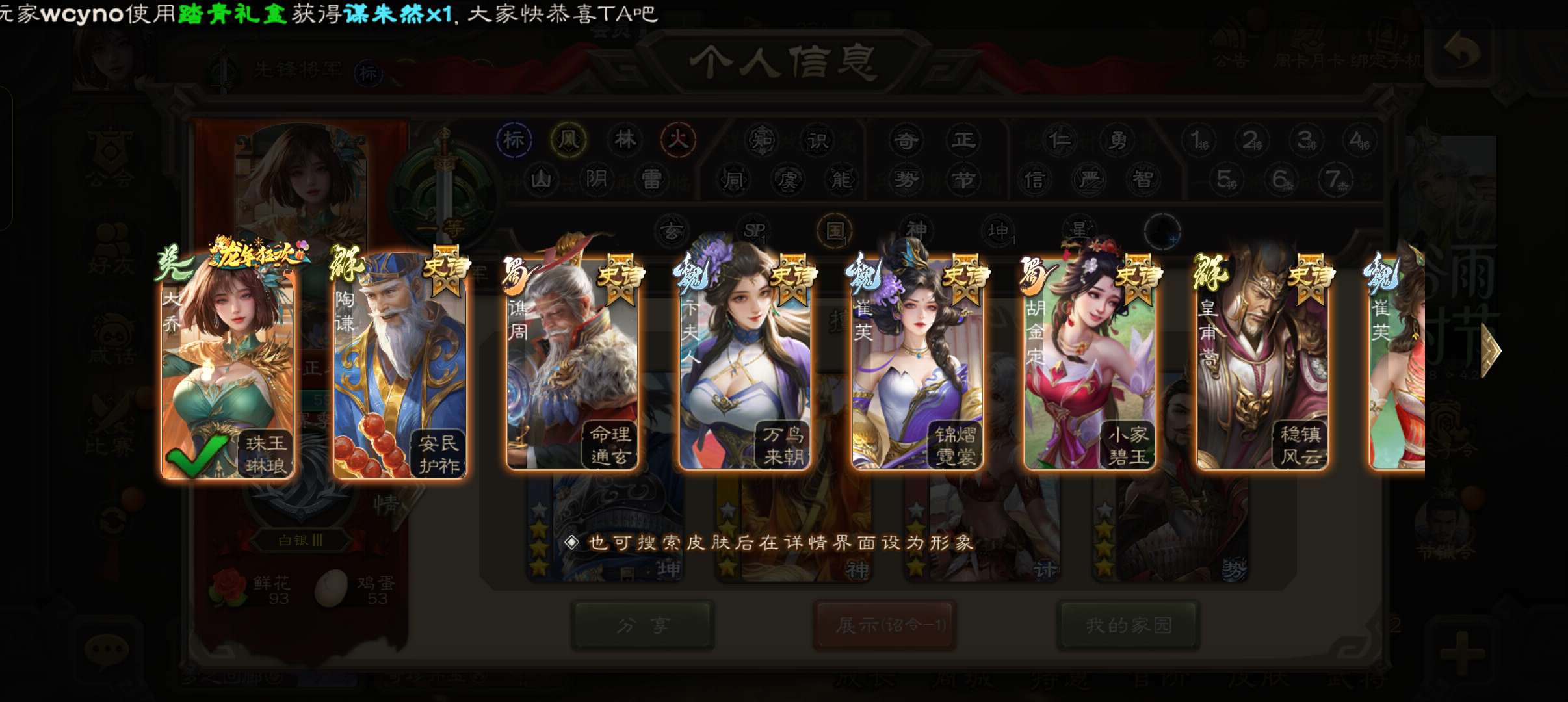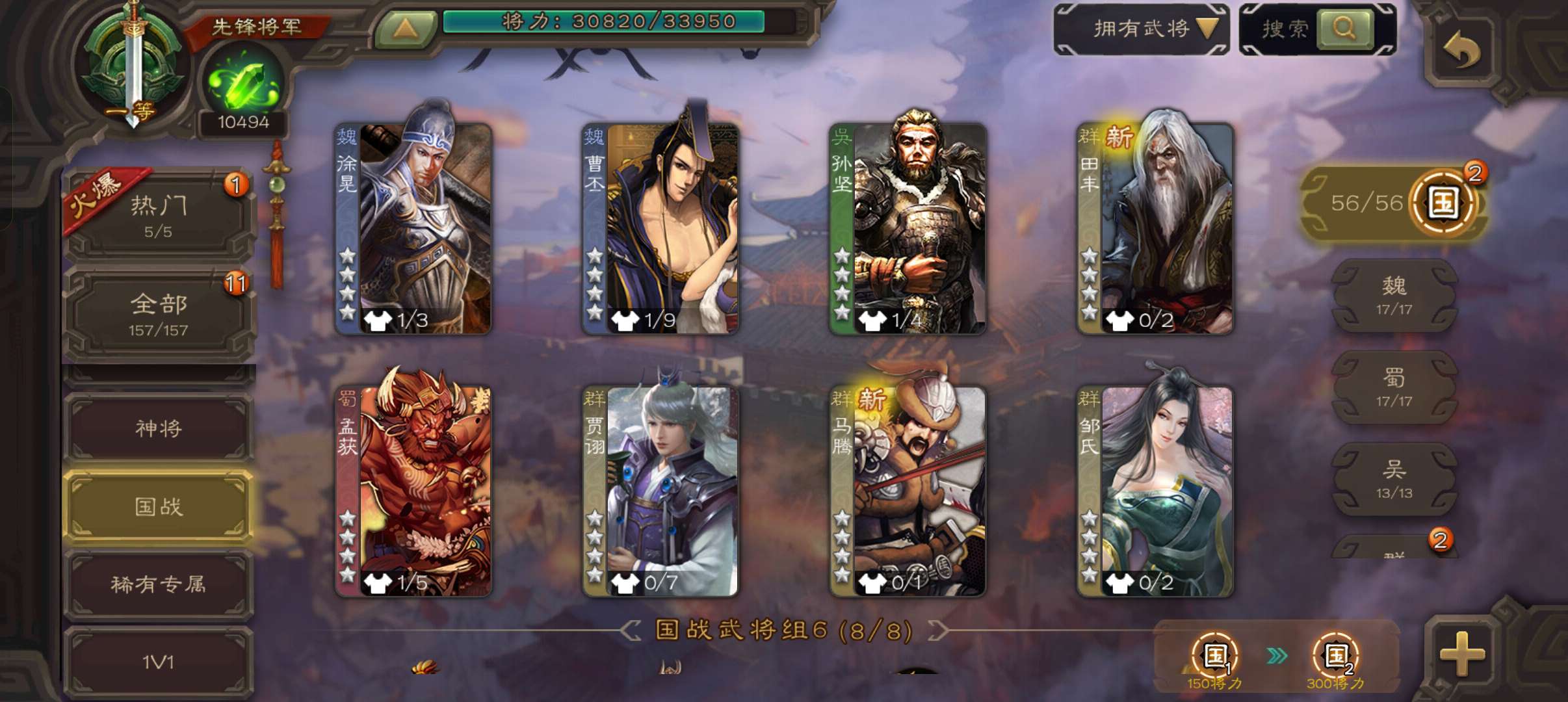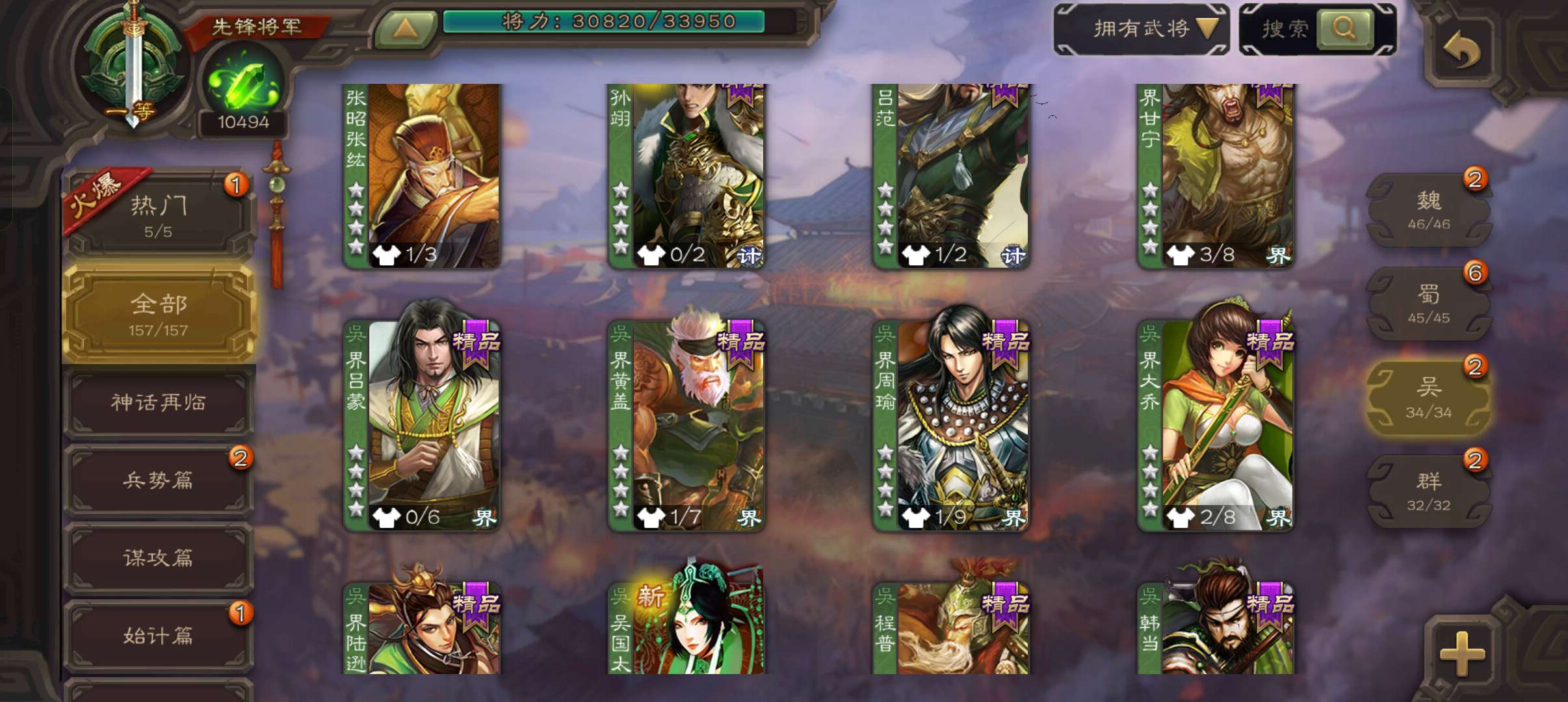 6史诗一等先锋,1万将魂9.3万羽毛7万豆,骥张辽神刘备花鬘王平张星彩董允,天工势杨弘甘夫人157将