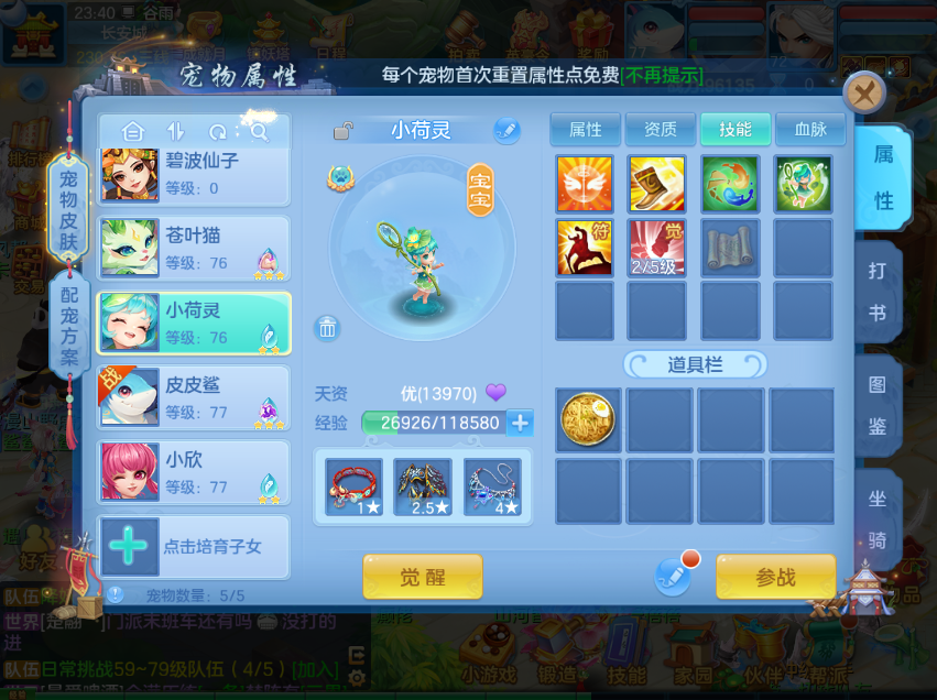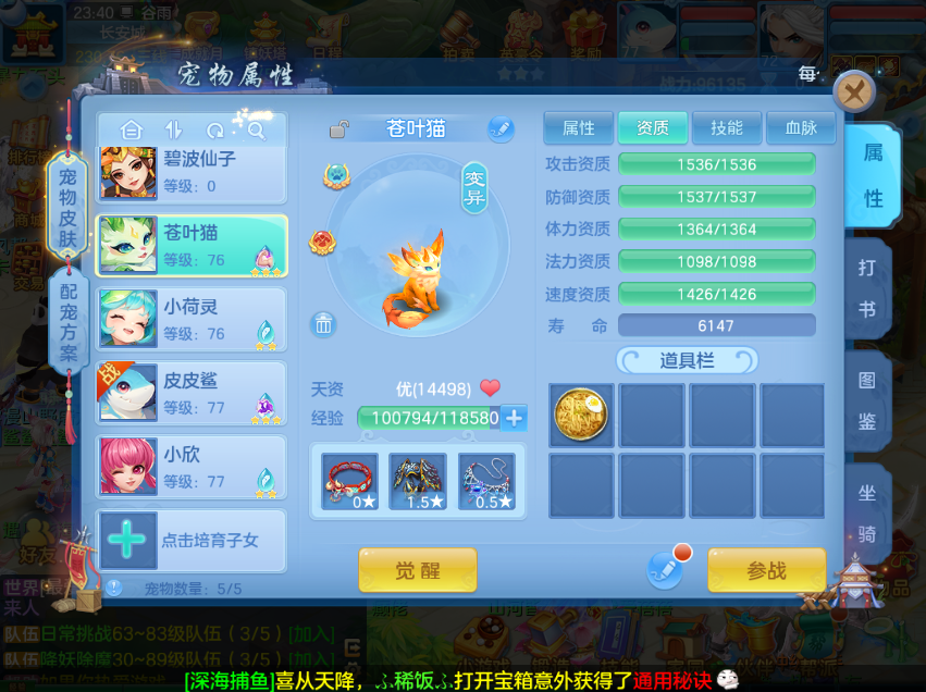 帐号资产:80神兽之灵待换神兽,30+万银子,5176万铜币、6000+个洗宠丹、高书、血脉源石、宠物装备、丹药、材料丰富资源号。