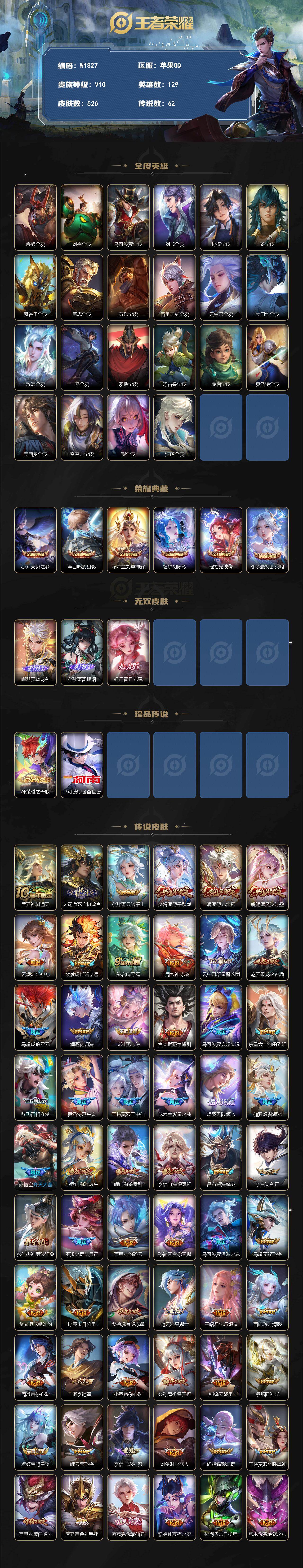 iOS/可改实名/V10/九霄神辉/鸣剑曳影/拾光映像/离恨烟/青丘九尾/器灵螭龙剑/526皮肤6典藏3无双2珍品传说62传说
