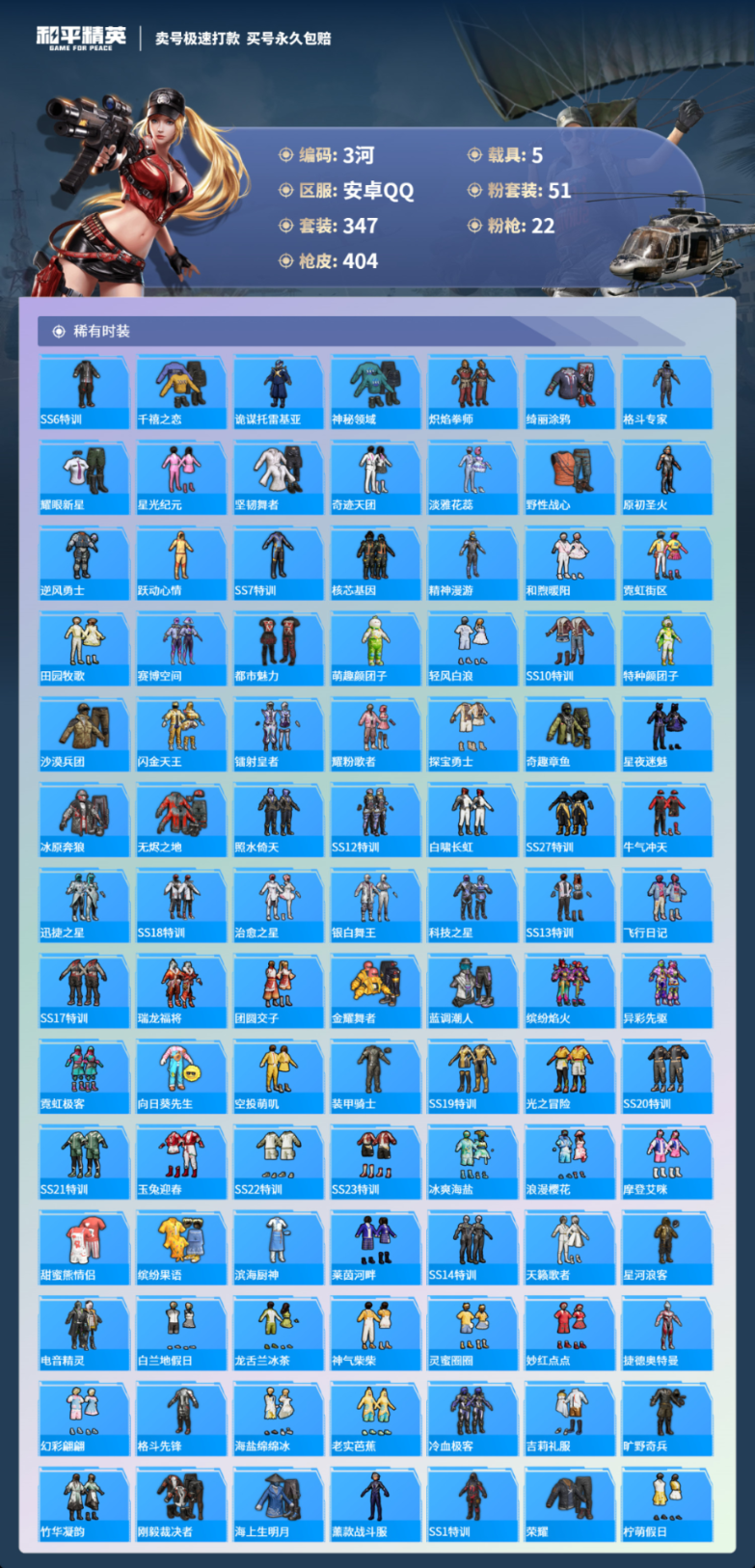 5载具347套装-404枪皮-安卓手Q-22王牌印记-51粉装-22特效枪-5载具-热力值-347套装-404枪皮-2卓越印记-0传奇印记