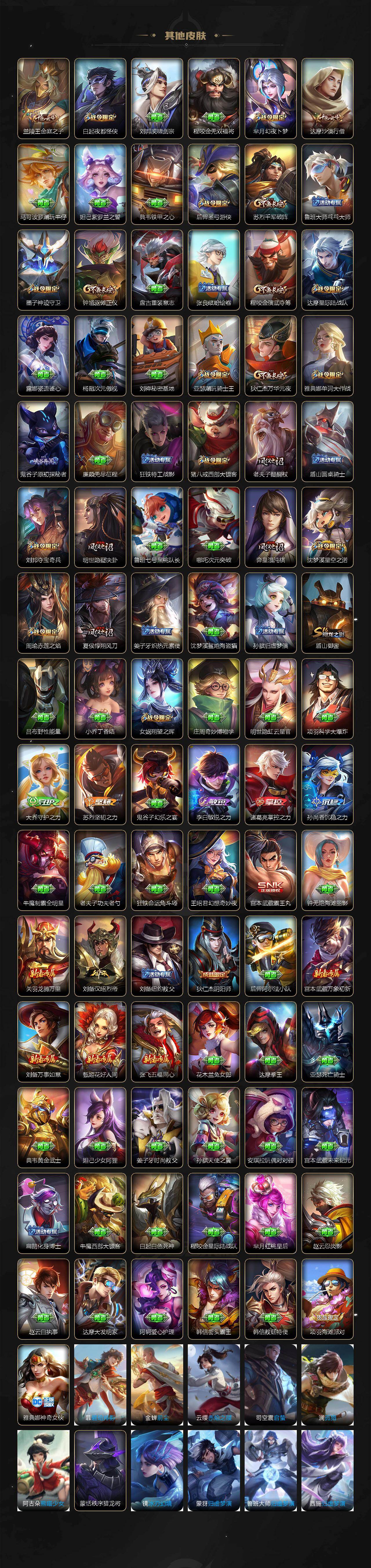 【限定皮肤】:李白谪仙醉月,狄仁杰阴阳师,廉颇寅虎御盾,赵云皇家