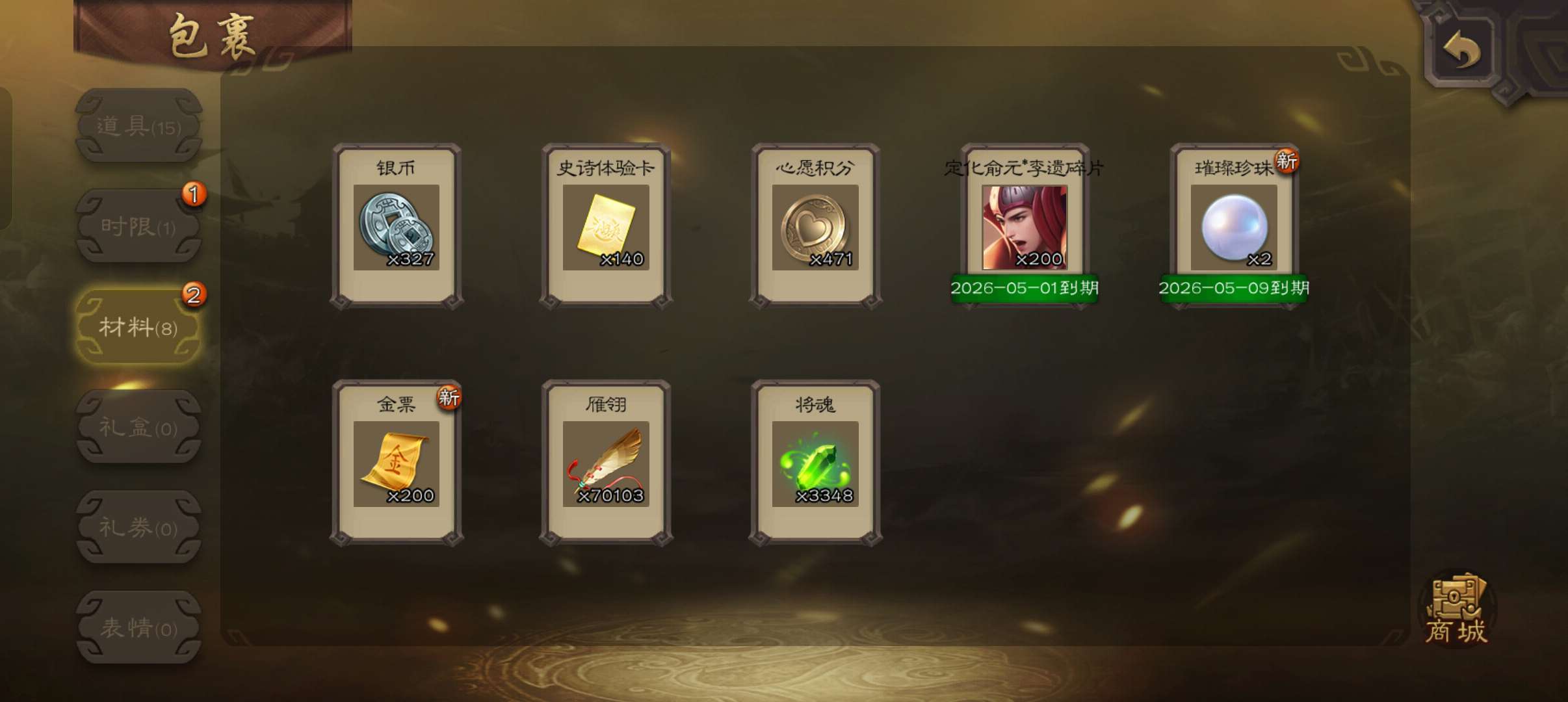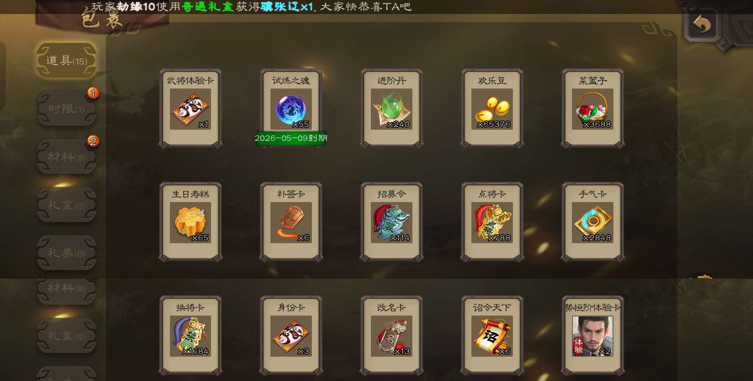 70将超级兵,3300将魂7万羽毛6万豆,大宝界徐盛界于禁张星彩董允4史诗,孙茹骥李典,114招募令