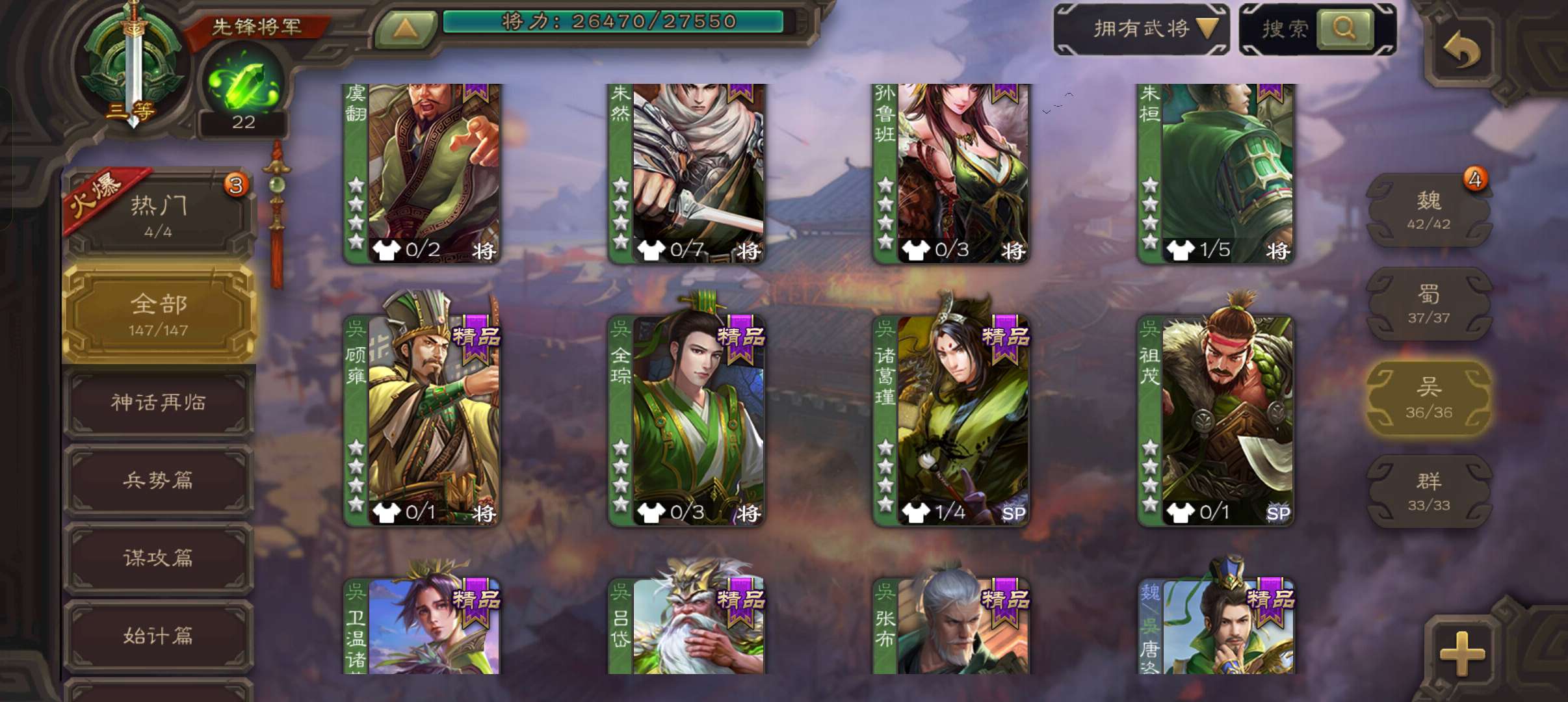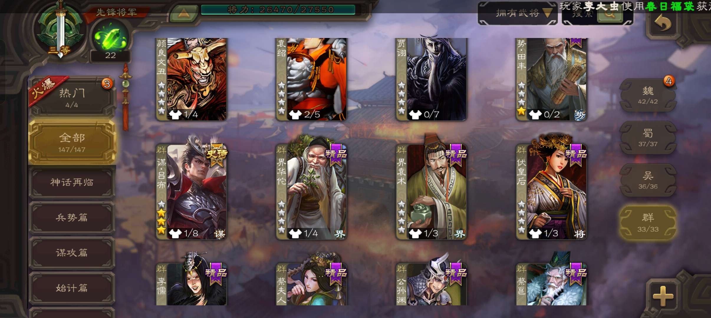 8万羽毛,谋吕布白马张星彩董允嵇康5史诗先锋,关银屏骥李典张布势田丰147将