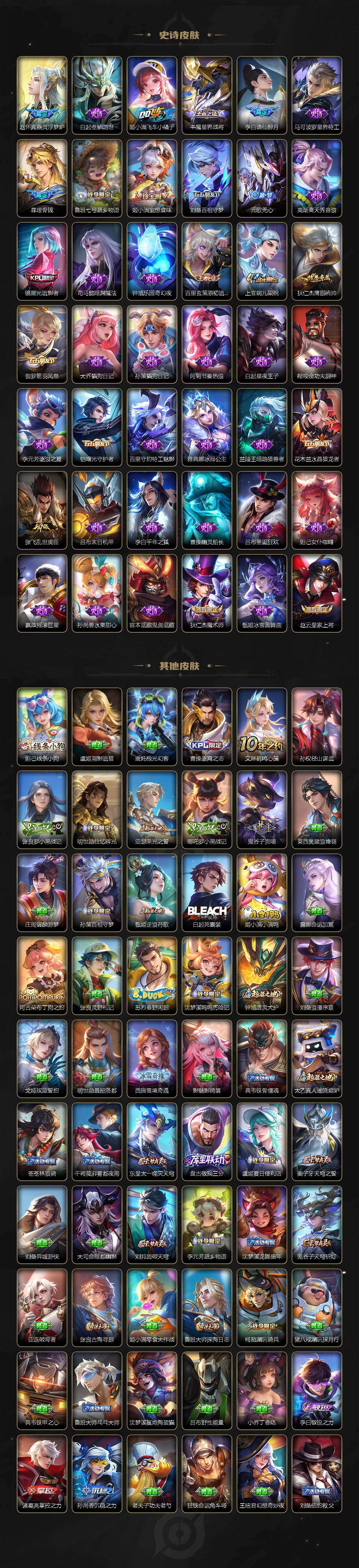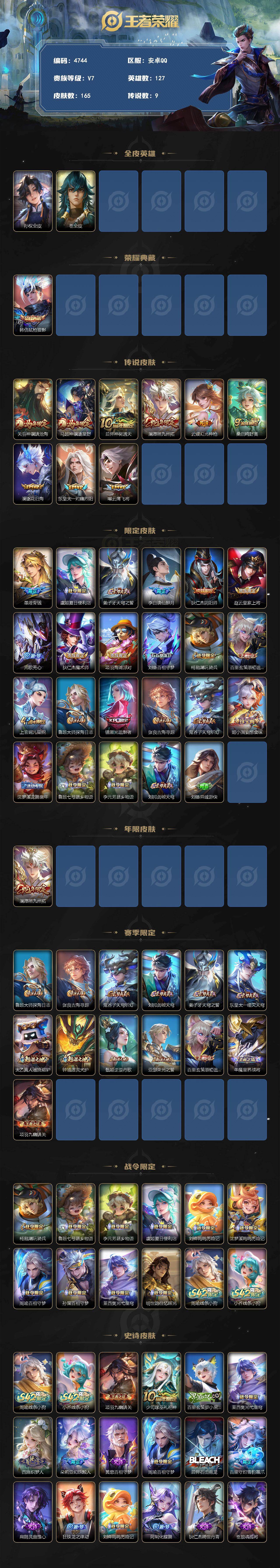 安卓Q-V7-最强王者段位-127英雄-165皮肤-1典藏皮肤-9传说-59史诗