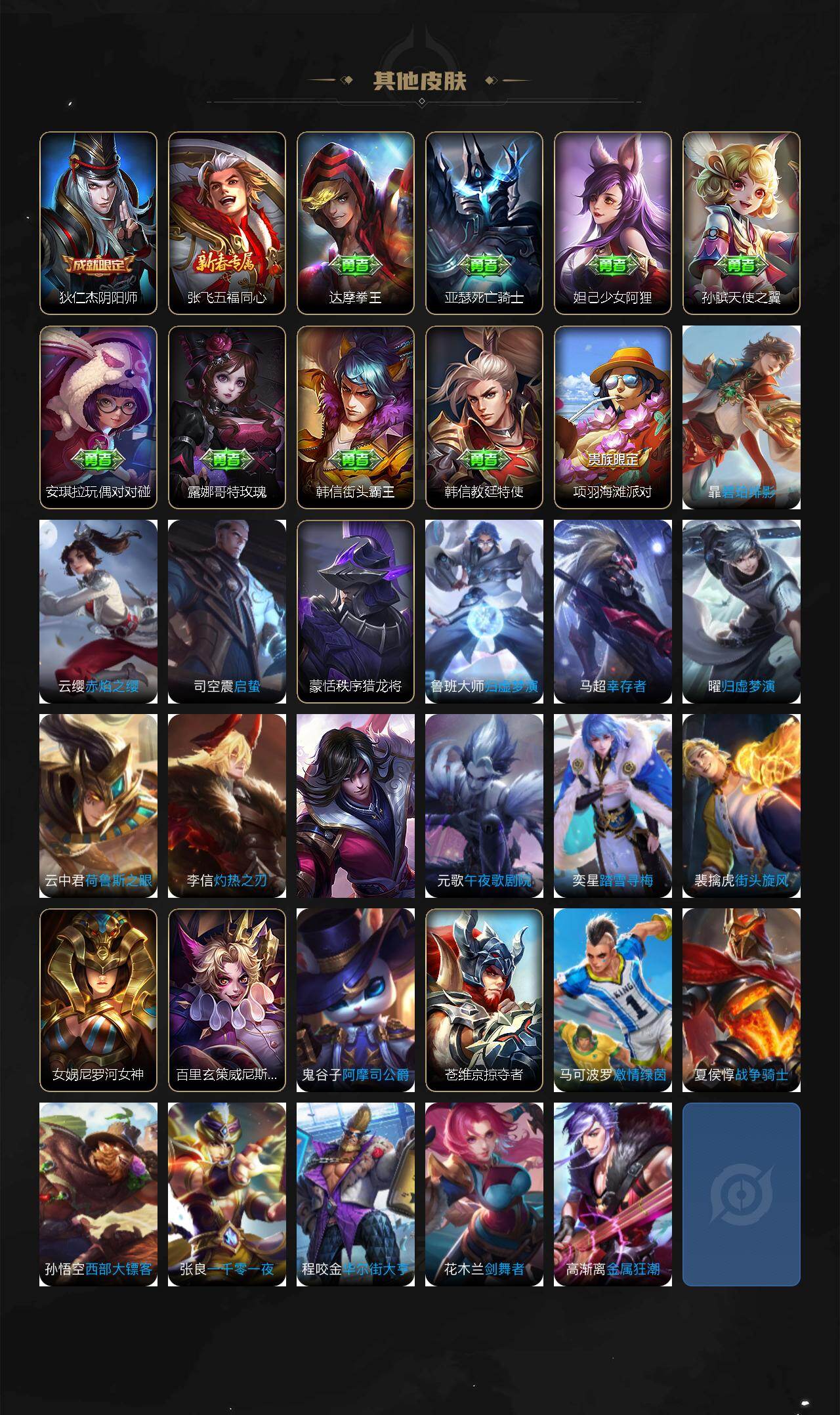 安卓Q-V7-最强王者段位-127英雄-165皮肤-1典藏皮肤-9传说-59史
