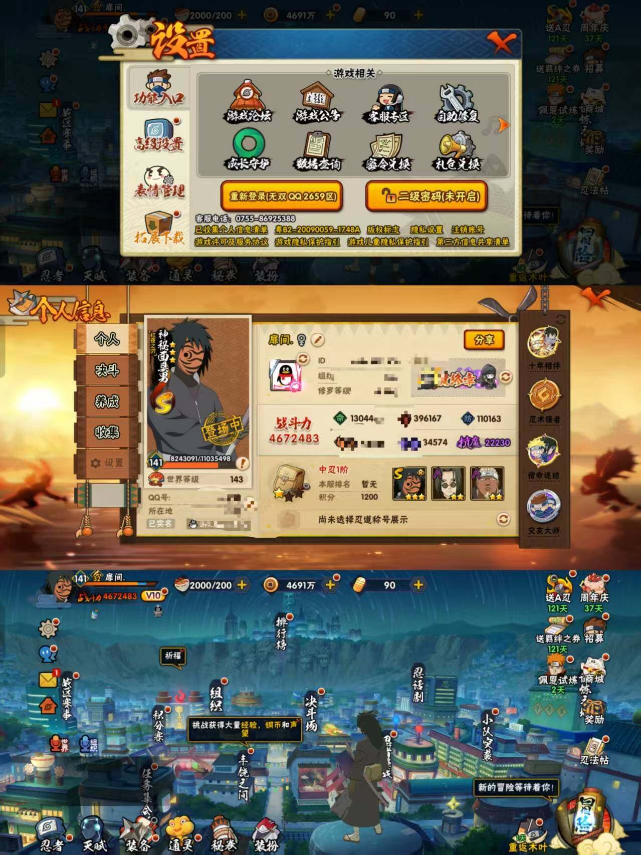 zl36,贵10,467万战,10s忍28a忍,熊猫九喇嘛水门忍战樱九喇嘛鸣人红面具天道佩恩舞杰自来也十周年鸣佐水门,漩涡鸣人·宇智波佐助(3星),漩涡鸣人「九喇嘛连结」(3星),春野樱「忍界大战」(3星),自来也「舞之豪杰」(3星),波风水门(3星),波风水门「九喇嘛连结」(3星),千手柱间「秽土转生」(3星),宇智波鼬「须佐能乎」(3星),神秘面具男「红夜之刃」(3星),佩恩「天道」(3星)