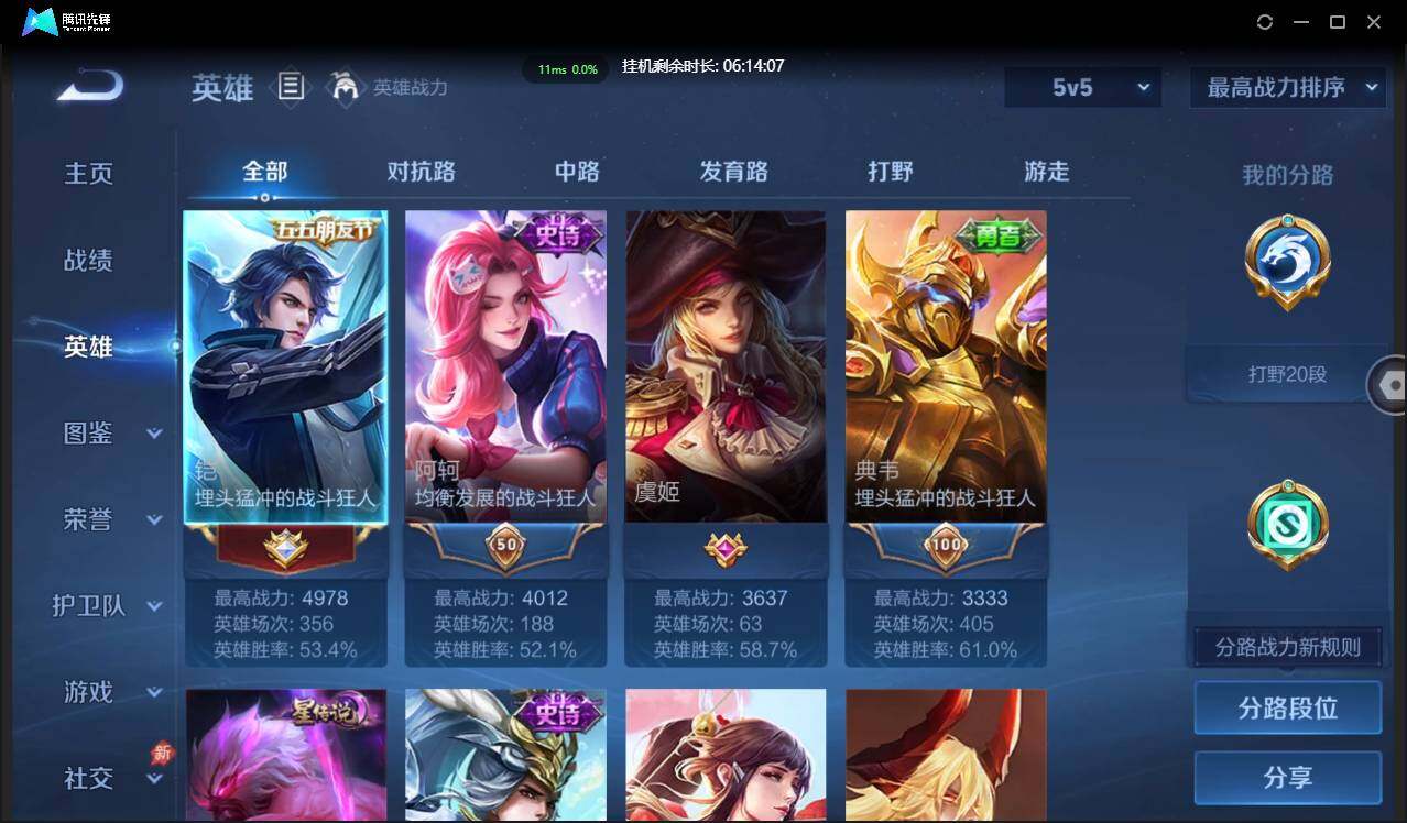 【W7204】【亮点:4.9K场次-打野20段】(热门:梦奇胖达荣荣,后羿黄金