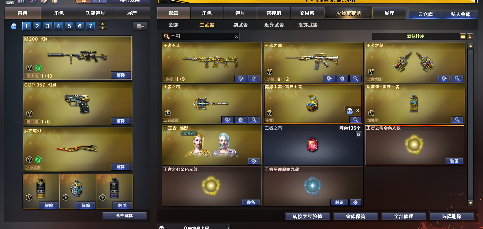 MCF891【135V 王者玄武 王者之魄-觉醒版 王者之击-觉醒版 王者之刺-觉醒版 炫金火麒麟 M200幻神】【等级】102【区服】山西一区【英雄角色】4【英雄武器】135【王者级武器】王者玄武 烟雾弹-雷霆王者-觉醒版 高爆手雷-雷霆王者 王者之魄-觉醒版 王者之击-觉醒版 王者之刺-觉醒版【炫金级武器】炫金火麒麟【英雄级角色】葵 华 幻面灵狐【音效卡】 HK417-朱雀-电竞之星-竞星跃动音效卡 屠龙-电竞之星-竞星跃动音效卡 Barrett-毁灭-怀旧音效卡 死神-雪域霜狐-怀旧音效卡