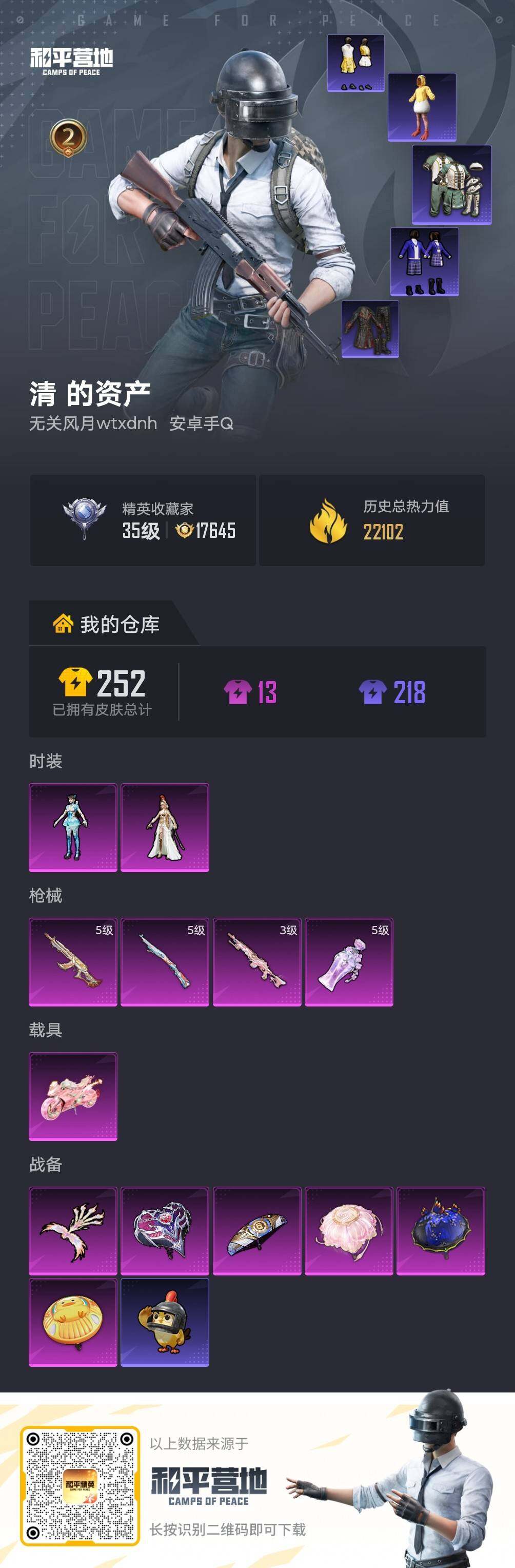 精品小号 可二次【特价出售/店主推荐】安卓手Q-2粉装-4特效枪-1载具-1粉色飞行器-22102热力值-2王牌印记-45套装-72枪皮【热门品类】:套装-粉红小猪【粉色套装】:角色-萨利娅,角色-异瞳寒姬【粉色枪皮等级】:M762-鬼刀(五级),Kar98K-巳巳如意(五级),Mk14-盛世惊鸿(三级),烟雾弹-丁香清露(五级)【粉色载具】:盛世惊鸿摩托车【粉色枪皮】:M762-鬼刀,Kar9