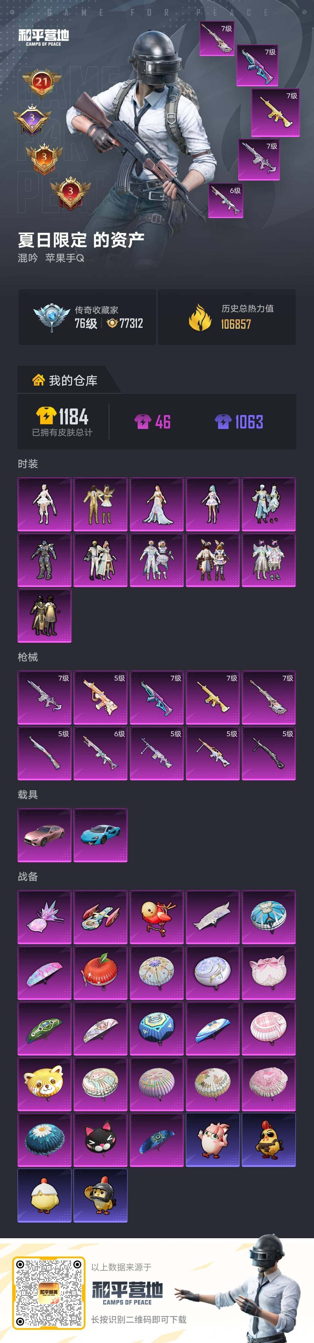21印记【特价出售/店主推荐--热门套装小丑鱼千金淑猫4把七级枪】苹果 手Q-11粉装-10特效枪-2载具-3粉色飞行器-106857热力值-21王牌印记-259套装-326枪皮【热门品类】:粉装-童趣迷兔,绝对防御上衣,套装-深海小丑鱼,套装-小丑鱼,套装-星河浪客【粉色套装】:粉装-金风玉露,粉装-金属狂野,粉装-童趣迷兔,粉装-彩虹鹿灵,粉装-山涧鹿灵,粉装-筑梦精灵,角色-幻影,角色-鸢