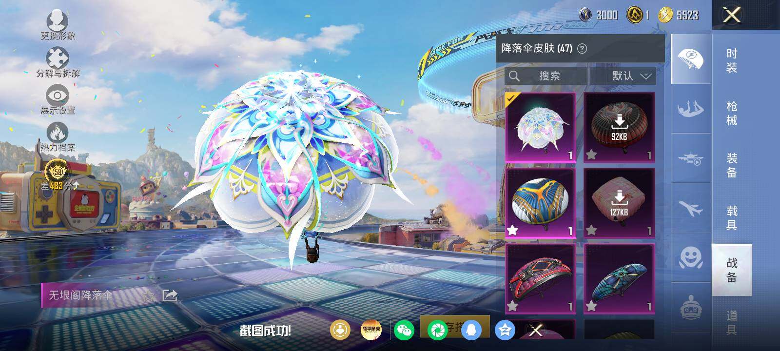 安卓手Q-7粉装-9特效枪-1载具-2粉色飞行器-58680热力值-5王牌印记-150套装-173枪皮