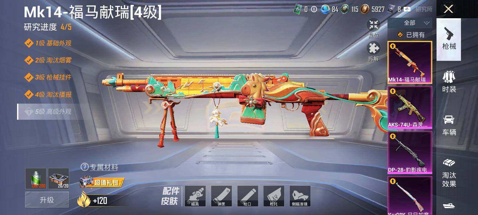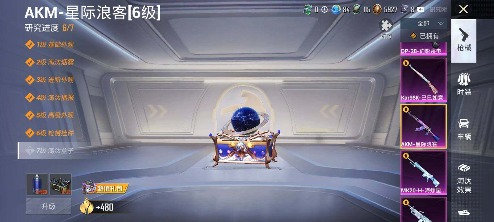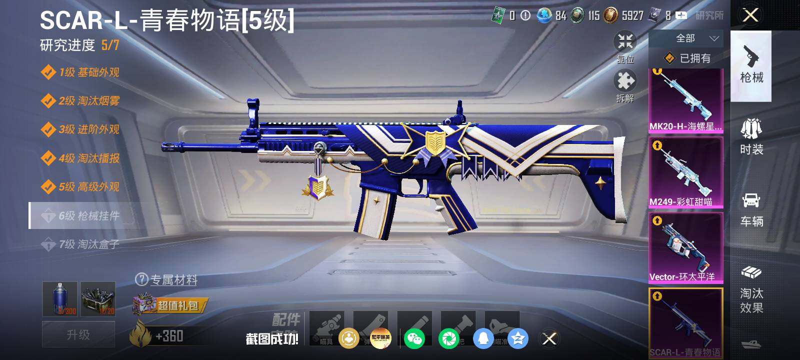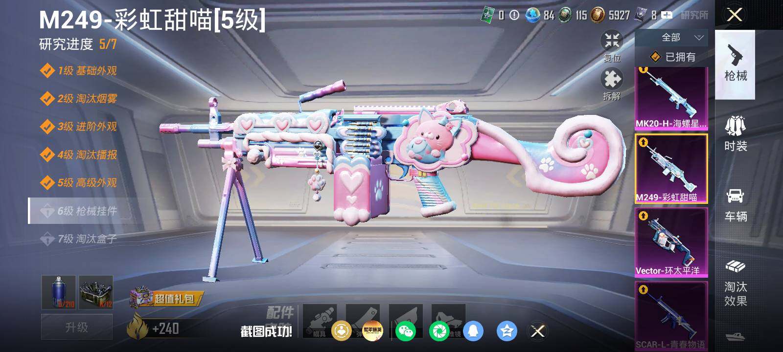 【粉色枪皮等级】:AKM-星际浪客(六级),SCAR-L-青春物语(五级),Vector-环太平洋(二级),AKS-