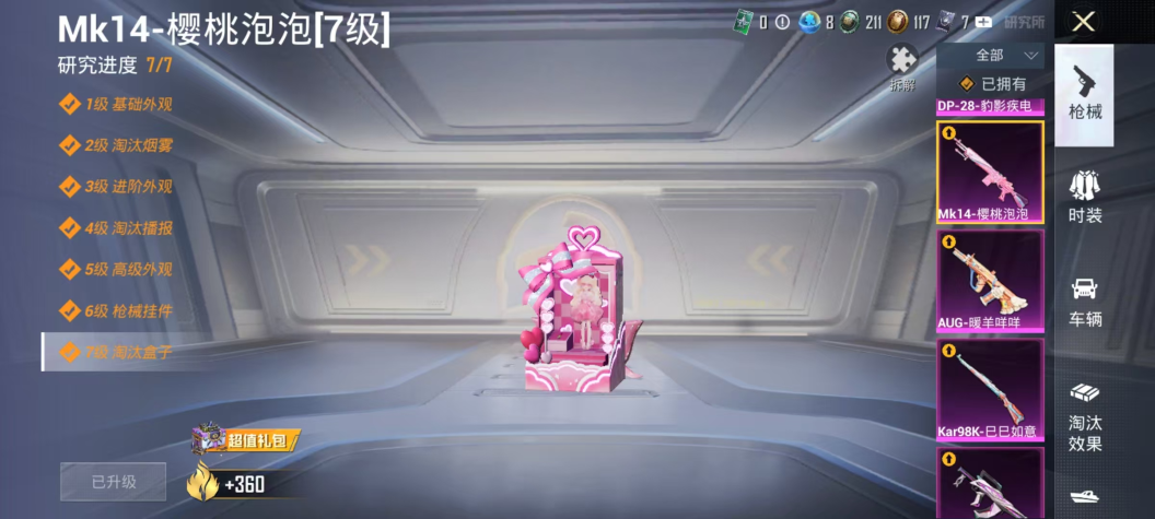 224-【5粉装11特效枪 可秒换绑不用等】 安卓Q区-70128热力值-161套装-234枪皮 【5粉装】 星之彼岸 角色-智耀战神 套装-未来领航者 角色-羊梦糖心 角色-女娲灵识【11特效枪】 Mk14-福马献瑞(5级) AKS-74U-森灵之息(5级) UMP45-萌骑冒险(3级) Mk14-樱桃泡泡(7级) M249-绝对恒星(4级) PKM-江南烟雨(5级) 破片手榴弹-秋玉花灯(