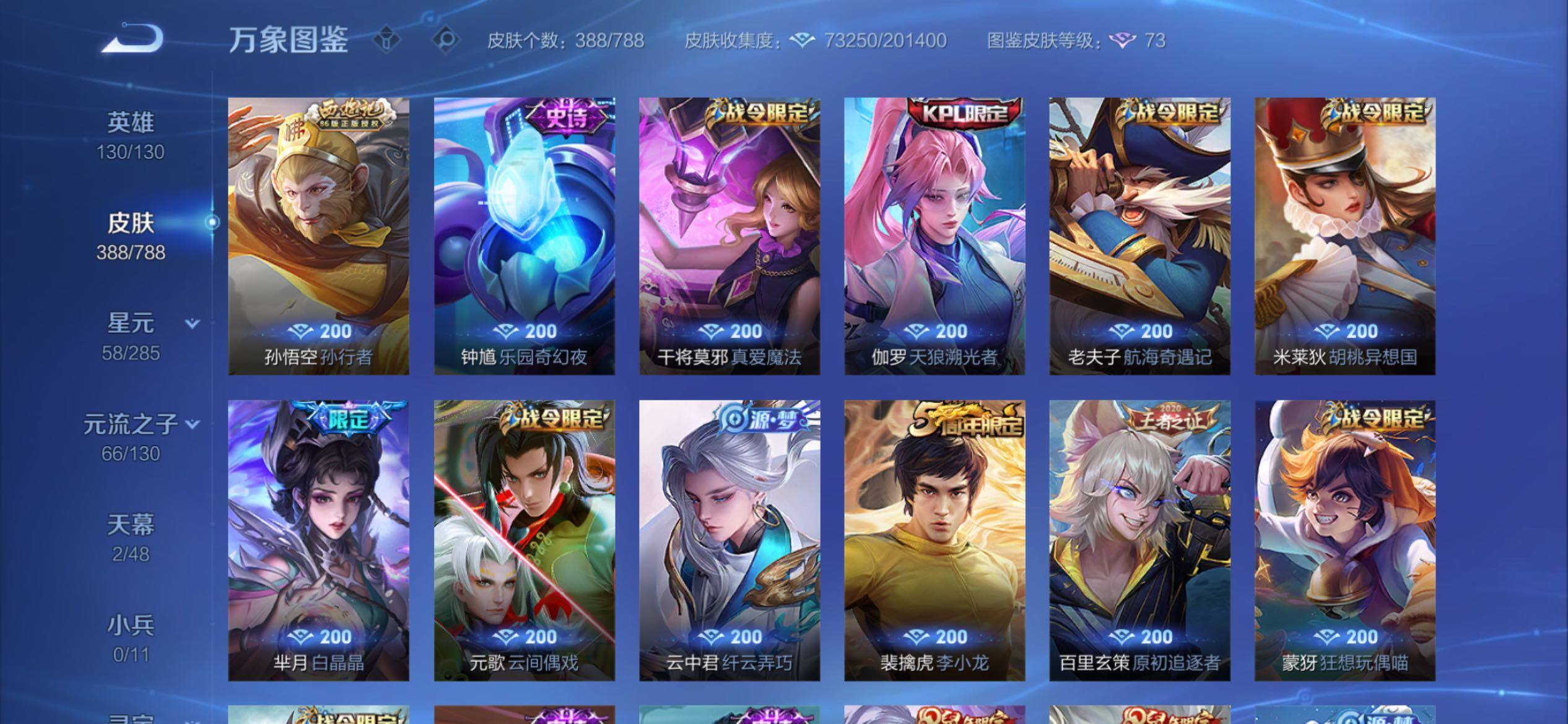 可换绑【高质量v9号推荐·7打野无双皮·3典藏有武则天·多传说·蛇年全套·限定传说多皮·琥珀纪元·异界灵契·白虎志·贵族积分14w】 4186星币 25按键,4星传说,1天幕,10王者印记,五级铭文290,可二次,苹果Q-V9-388皮肤-2典藏皮肤-1典藏英雄-7无双-1珍品传说-45传说-116史诗【英雄全皮】:司马懿全皮,孙权全皮,鬼谷子全皮,敖隐全皮,影全