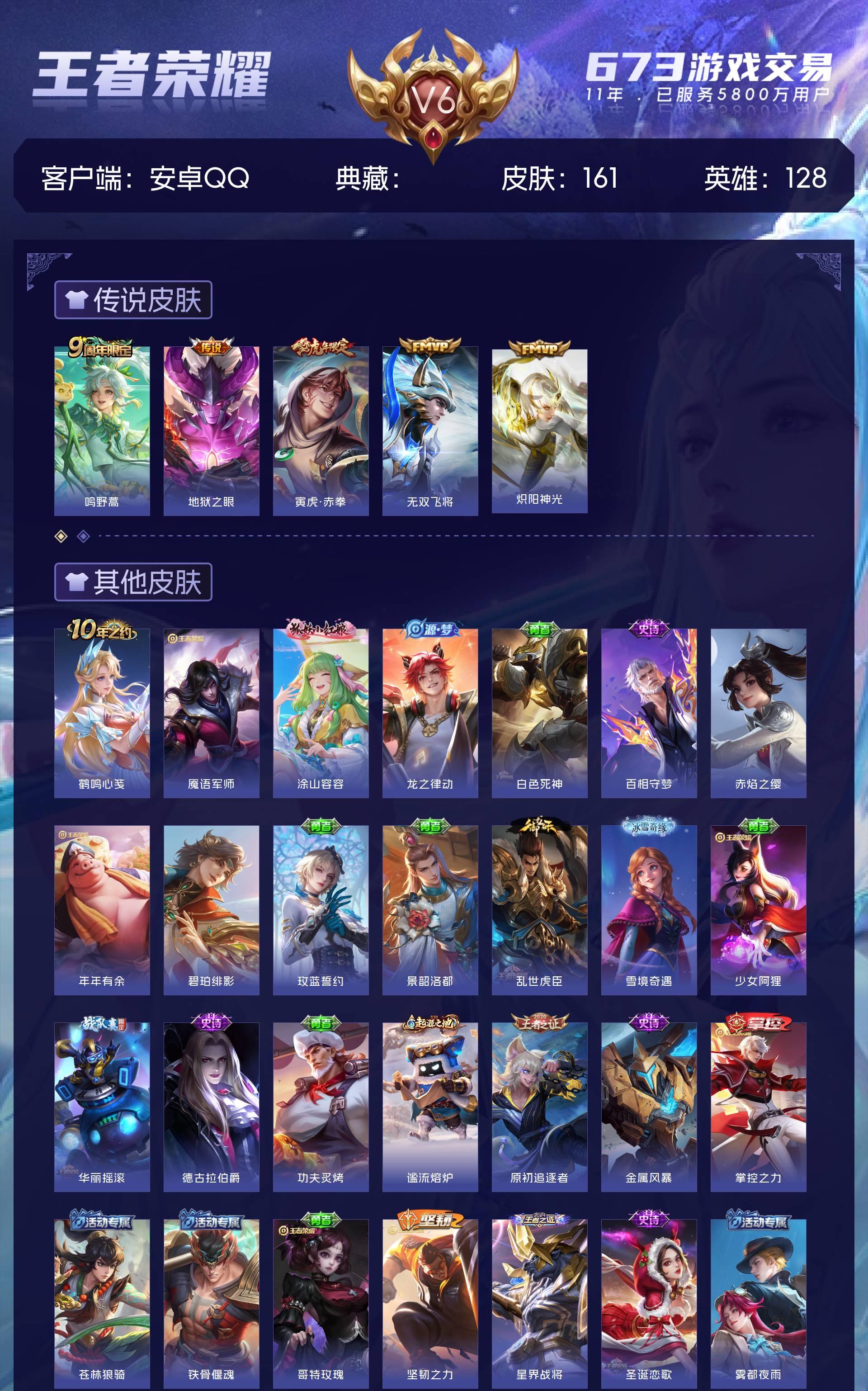 V6 皮肤161 英雄128 永恒钻石 星传说1 传说5
