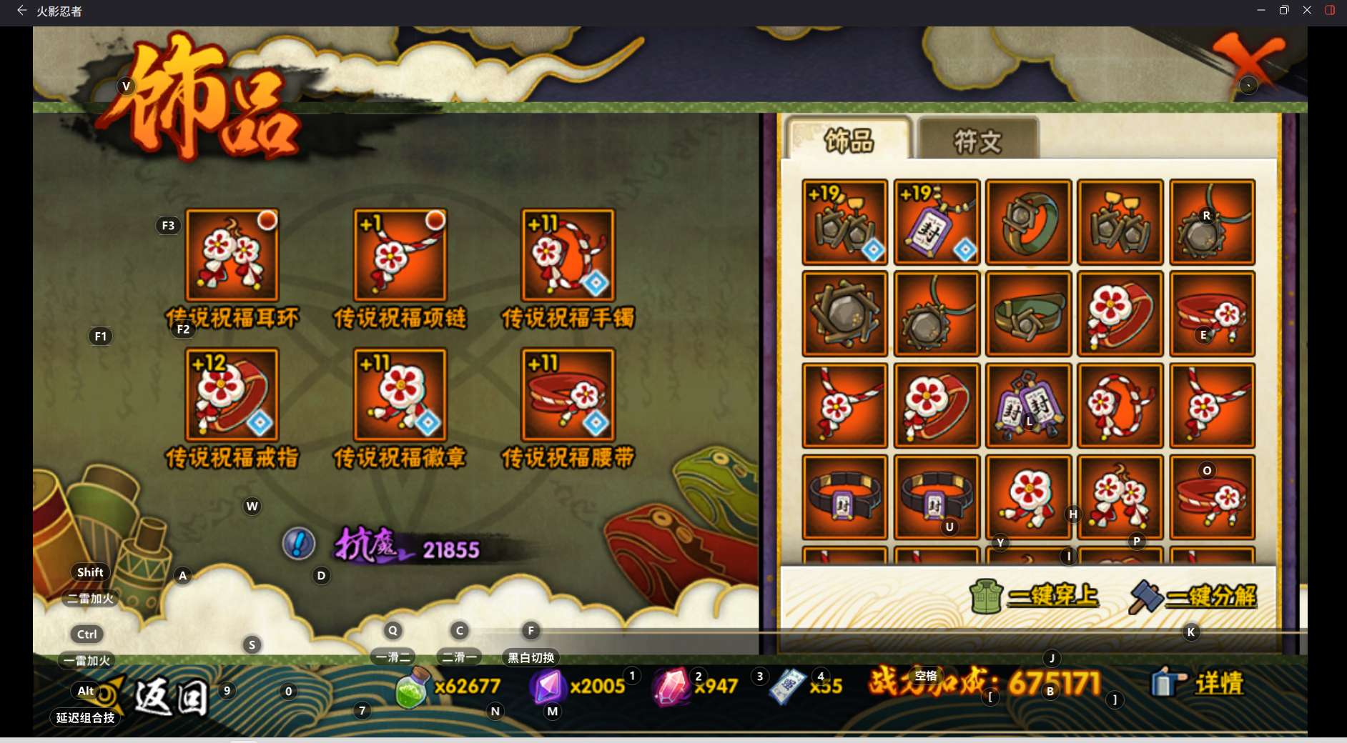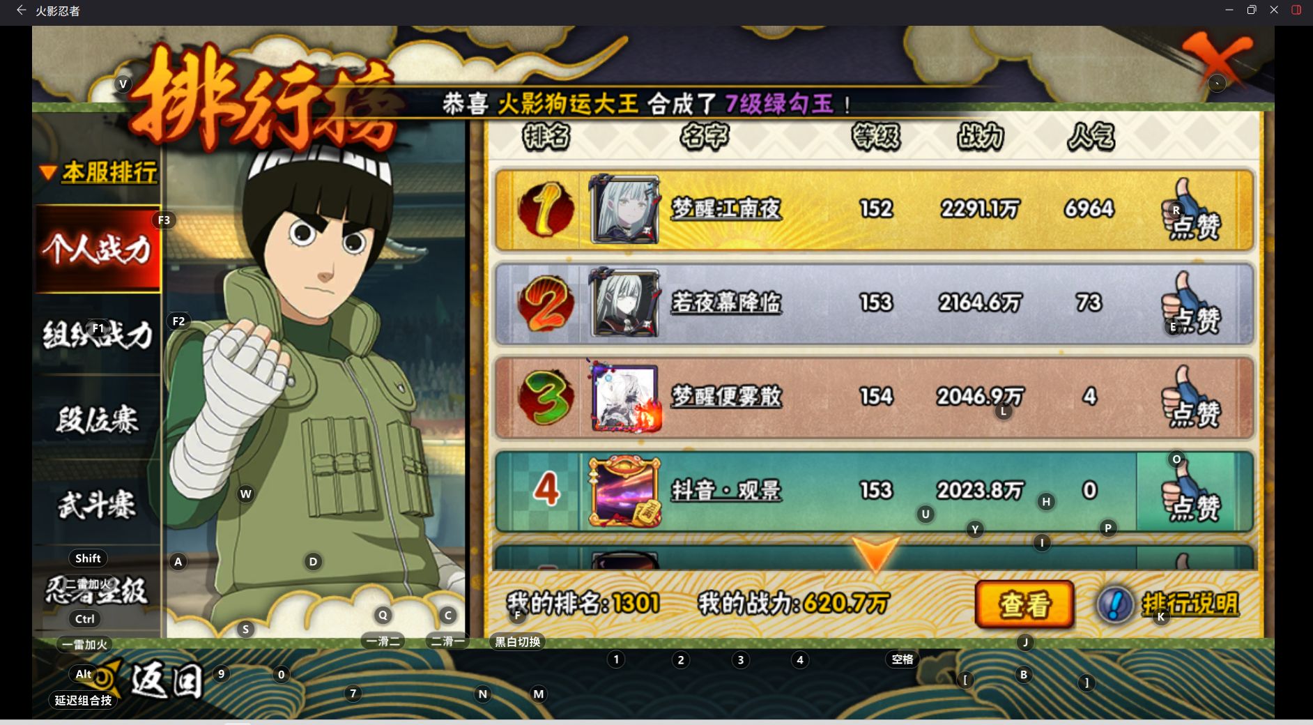 620W战力白面创柱紫狗11S+恶灵飞段19A+绿牛碎片70