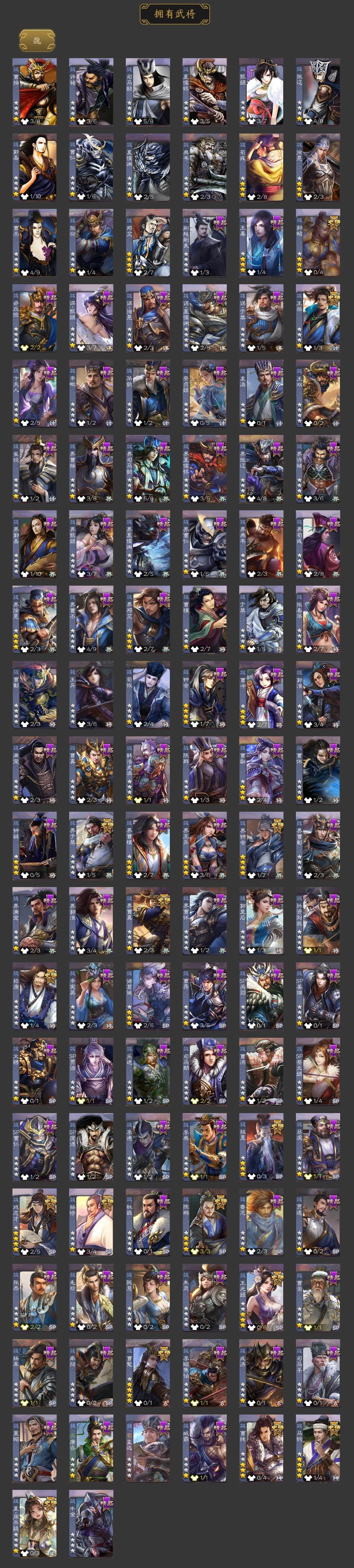 神吕布,神赵云,神司马懿,神陆逊,神刘备,神甘宁,神郭嘉,神诸葛亮,神姜维,曹髦,星周不疑,王粲,杨修,王元姬,马钧,界钟会,界于禁,界曹真,嵇康,郝昭,陈琳,曹纯,戏志才,程昱,
