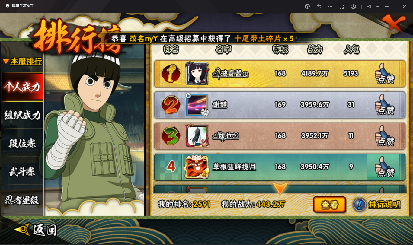 (可转苹果)443W战力长门死三代3S+飞段11A战力443